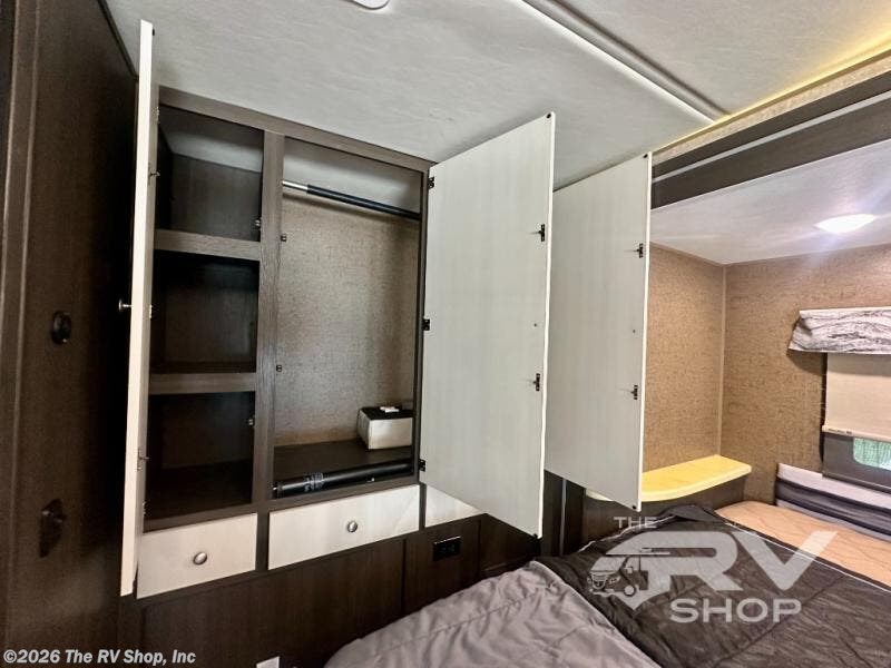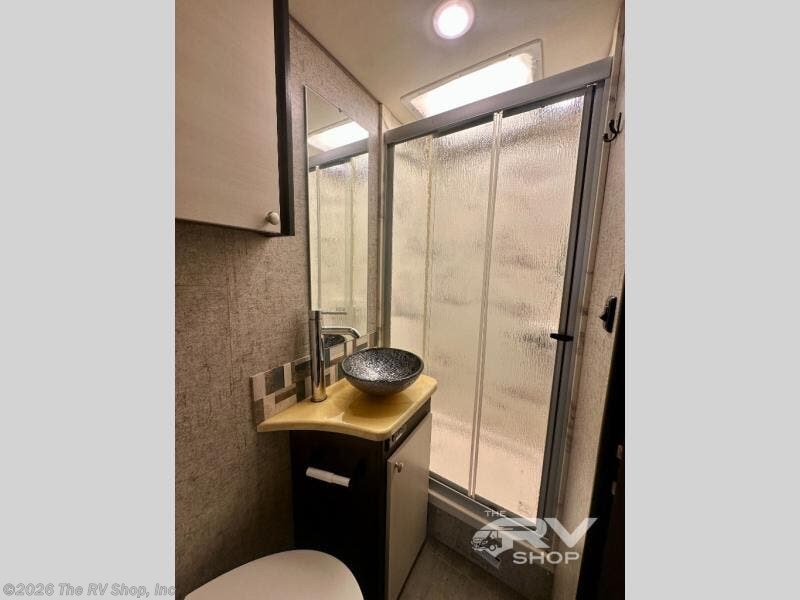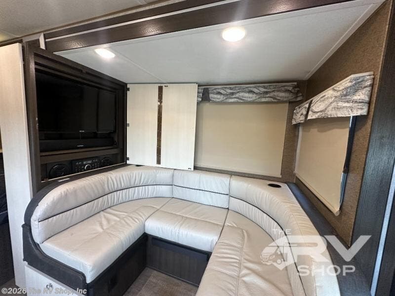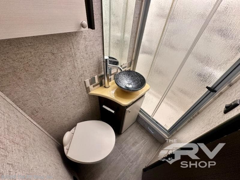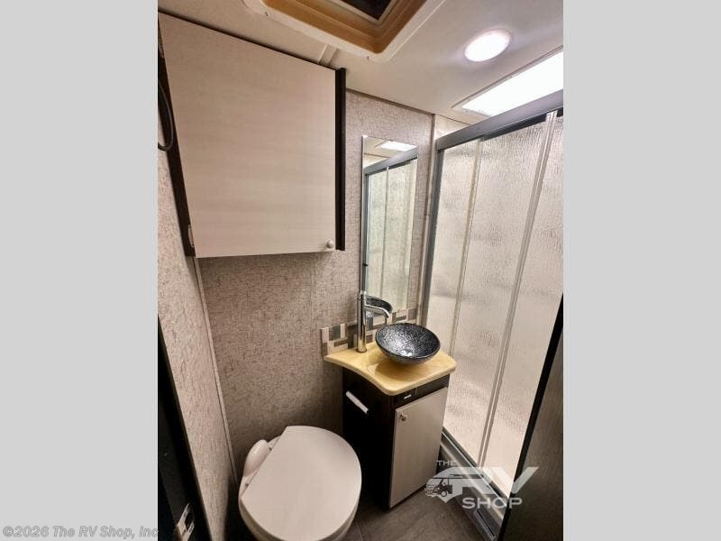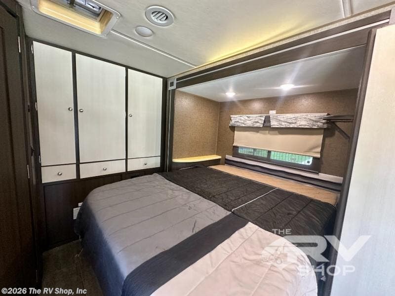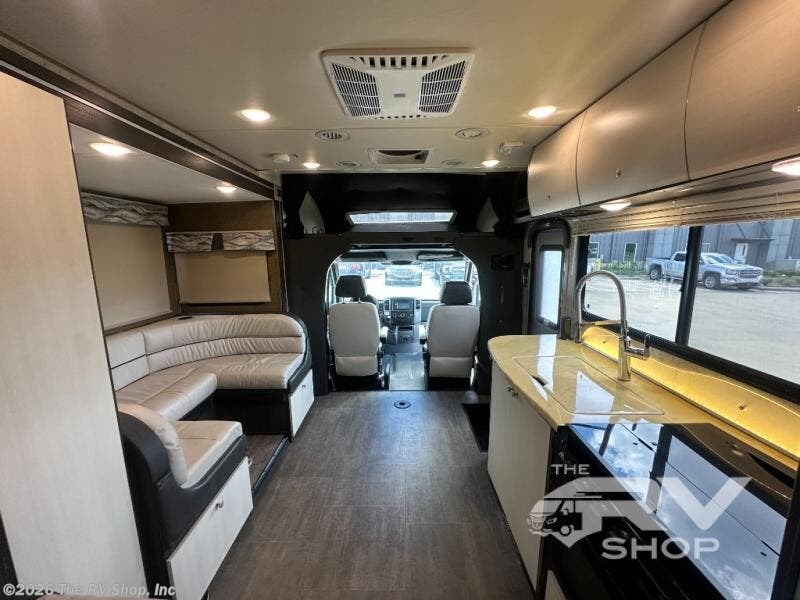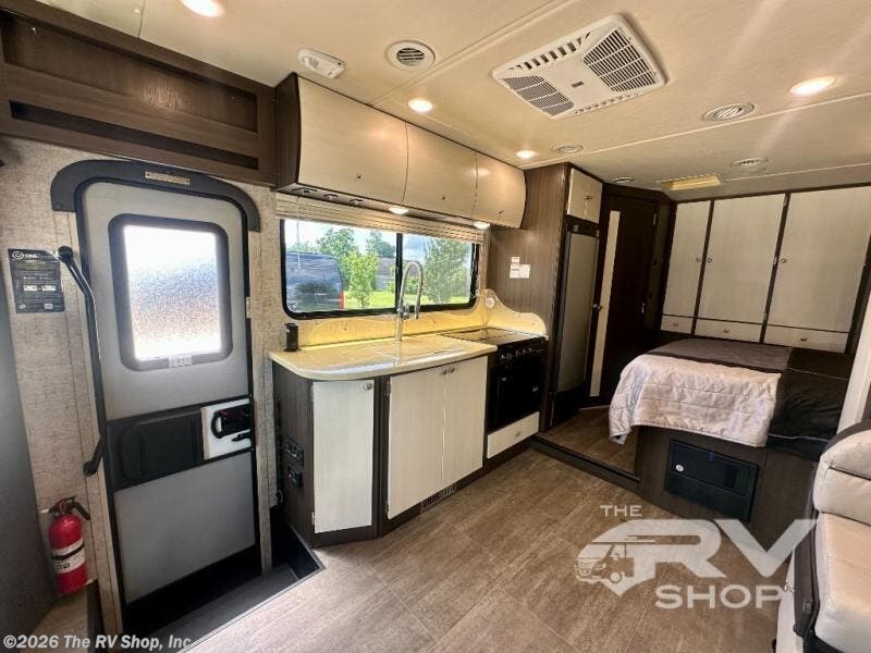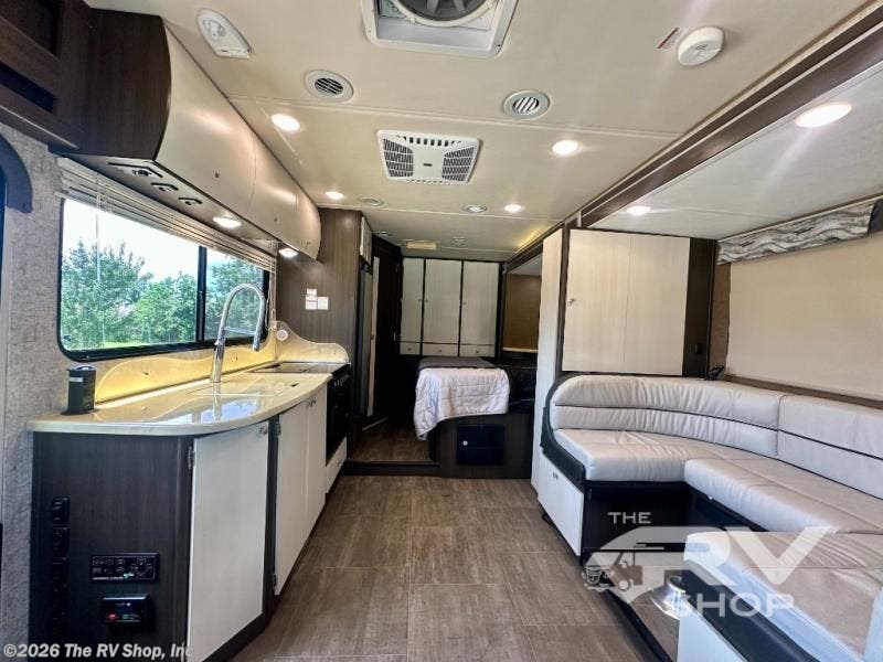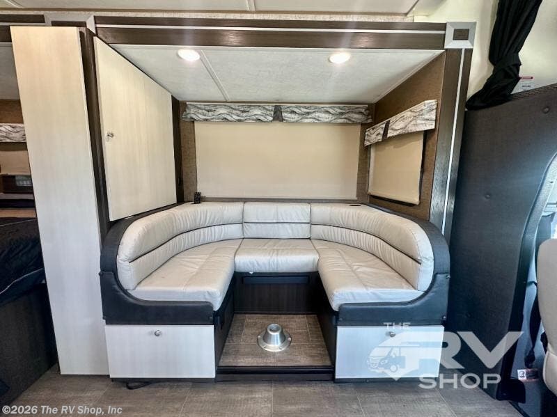 Do you dream about traveling to far destinations and enjoy attending events with the comforts of your own bathroom and bedding? This Prism Elite 24EF class C diesel motor home makes traveling and sleeping comfortable for all. In the morning you can enjoy your coffee while sitting in the driver and passenger seat with a pedestal table between. You can rest on the queen bed while the kids or your guests sleep on the cab-over bunk or U-shaped dinette once prepared for bedtime. You will appreciate the convenience of a private bathroom no matter where you travel. And the cook will surely love heating up leftovers in the convection microwave for quick meals when on the go. Come see why this RV just makes sense!