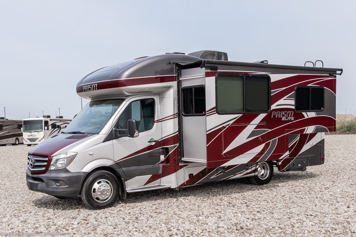 Used Coachmen RV for sale – 2018 Coachmen Prism Elite 24EF is approximately 25’ 6” in length with 41,773 Miles, 1 slide and features aluminum wheels, auto leveling jacks, full body paint, 3 camera monitoring system, Onan generator, Mercedes-Benz diesel engine, Mercedes-Benz chassis, tilt/telescoping steering wheel, smart wheel, keyless entry, gas/electric water heater, power patio awning, LED running lights, exterior shower, exterior entertainment, ladder, leather seating, 7 foot ceiling, multi-plex control panel, power vents, solid surface counter, 3 burner gas range, glass shower door, overhead loft, theater seats and much more. For additional details on this unit and our entire inventory including brochures, window sticker, videos, photos, reviews & testimonials as well as additional information about Motor Home Specialist and our manufacturers please visit us at or call 800-335-6054 for our Texas location or 334-288-0331 for our Alabama location. At Motor Home Specialist, we DO NOT charge any prep or orientation fees like you will find at other dealerships. Read Thousands upon Thousands of 5-Star Reviews at and See What They Had to Say About Their Experience at Motor Home Specialist.