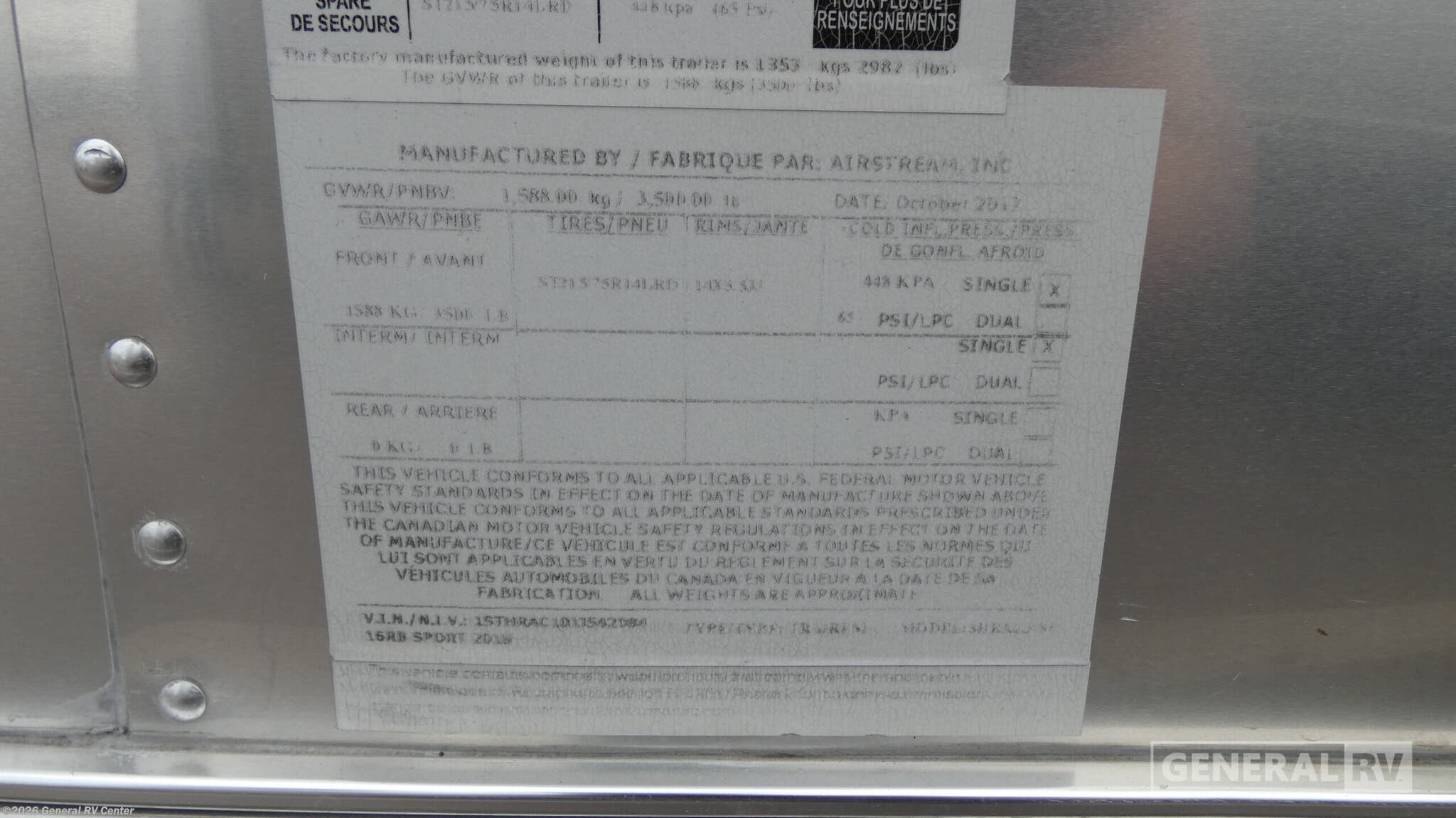 Request More Info on this 2018 Airstream Bambi SPORT 16RB Offered for sale by General RV Center