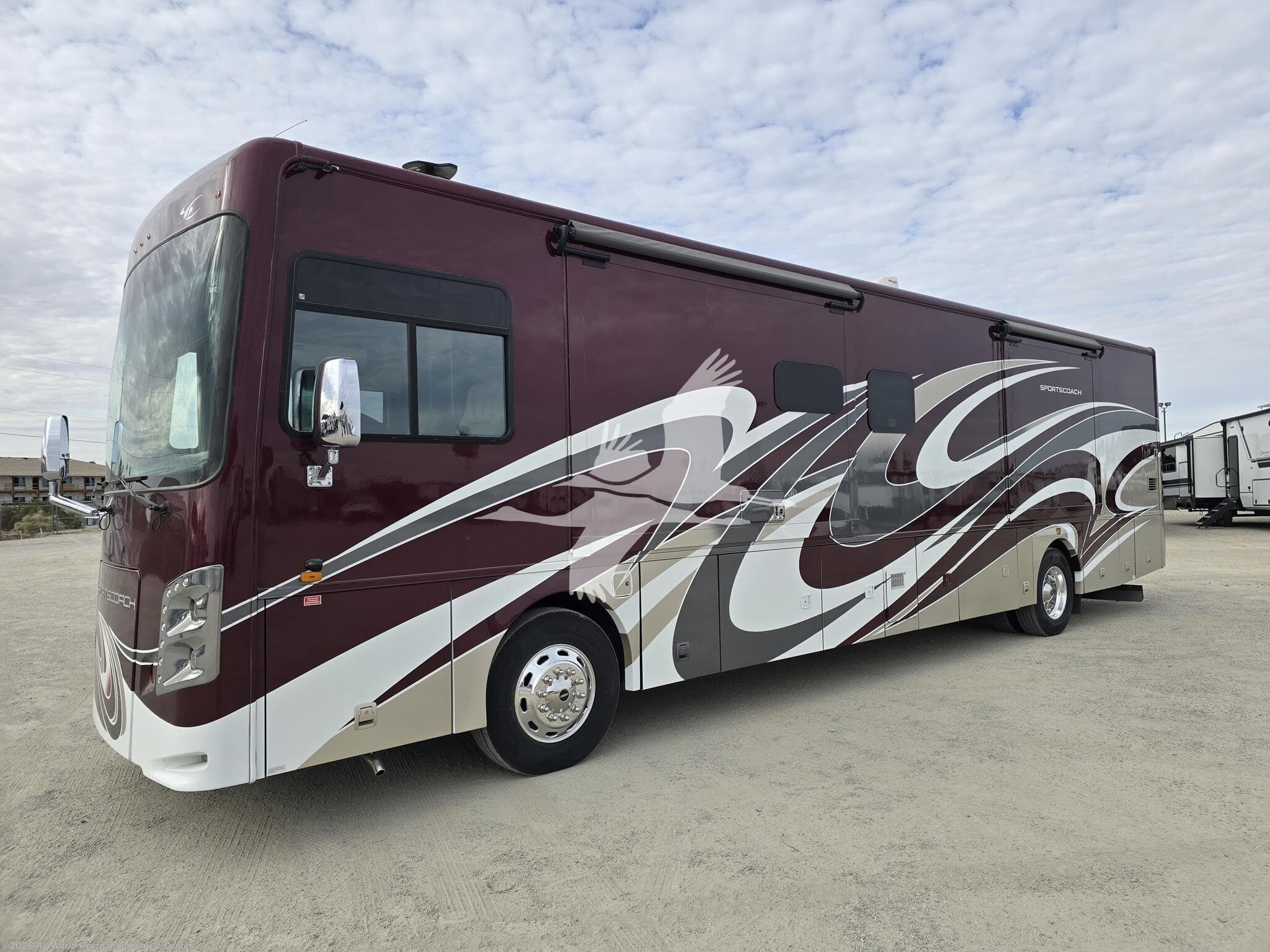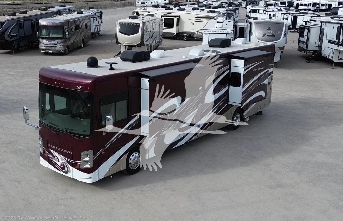 ****STK#: CW18931A.**** Forget the great outdoors. Feast your eyes on the awesome interior views of the Sportscoach! The most affordable diesel motorhome on the market. Nothing improves your day like a pleasant surprise. Buying a coach ticket and getting bumped up to first class. Ordering dinner and receiving dessert on the house. Sportscoach is like that. It moves you up to a higher level of style, features and convenience than other coaches in its class. Whether you’re preparing a meal, getting some much needed rest and relaxation, or watching your favorite sporting event, Sportscoach has it all. From its tastefully appointed kitchen, the leatherette sofa with optional theatre seating (409BG), or the 40” exterior LED TV, you will never be short of activities. Bragging to your friends about your wise investment or going no further than a knowing smile when they ask how much you paid. The Sportscoach 409BG is a family friendly, bath and a half, Bunk model motorhome that can sleep up to 6. The mid-coach living area is features a large 40" LED TV and fireplace and theater style recliners.. Other features on this 41'' 1" coach include a powerful 360 Horse Power Cummins Engine on a Freightliner Chassis with a push-button Allison automatic transmission, Full Body Paint, Diesel Generator, 3 Slide-Outs, Slide Toppers, Hydraulic Levelers, Tile Floor in Kitchen and Bath area, Deluxe Cabinets, Solid Surface Counter Tops, Mirrored Wardrobe, Double, Electric Patio Awning, Dinette Table & Free Standing Chairs, Ducted AC, 4 Door Refrigerator, Stacked Washer & Dryer, Tilt Steering Wheel, Sleeper Sofa, 3 Burner Stove, Convection Microwave Oven, Water Filtration System, Day/Night Shades, Cruise Control, Rear Walk-Around Queen Bed, Large Wardrobe Closet, and more.