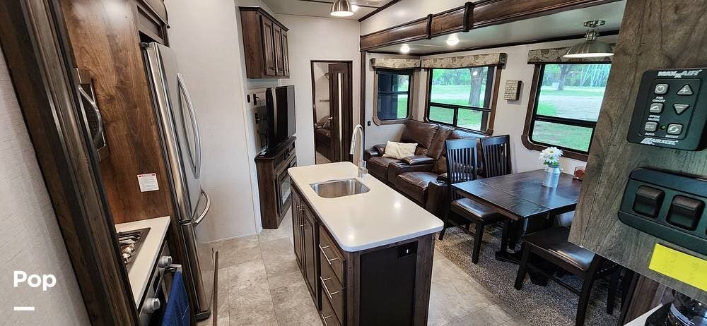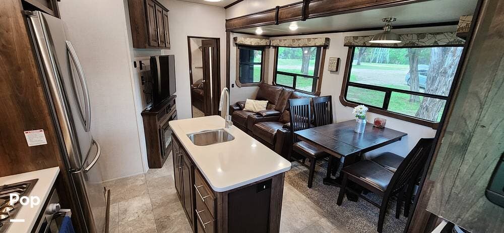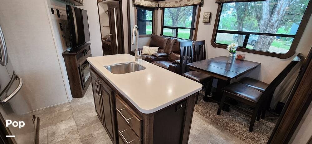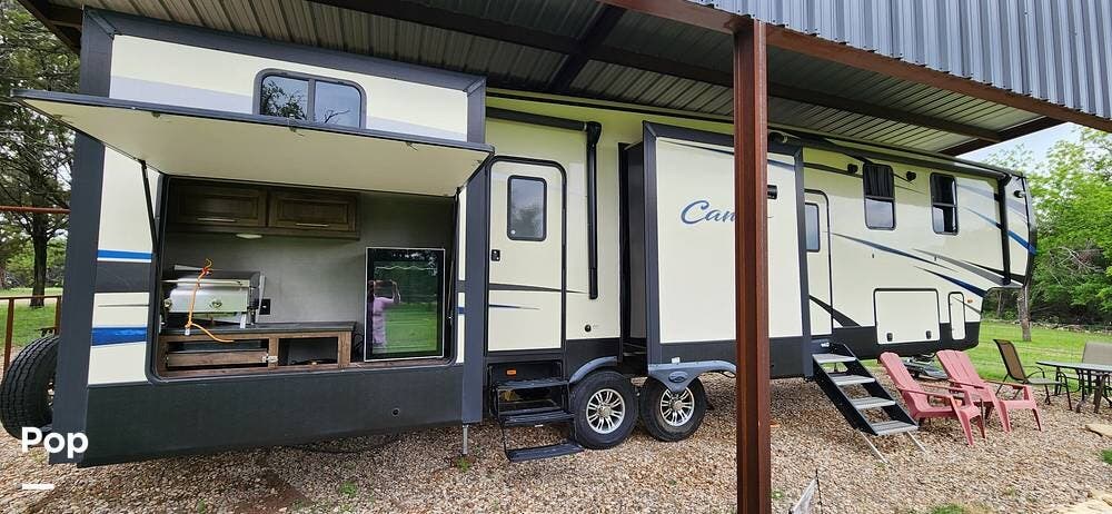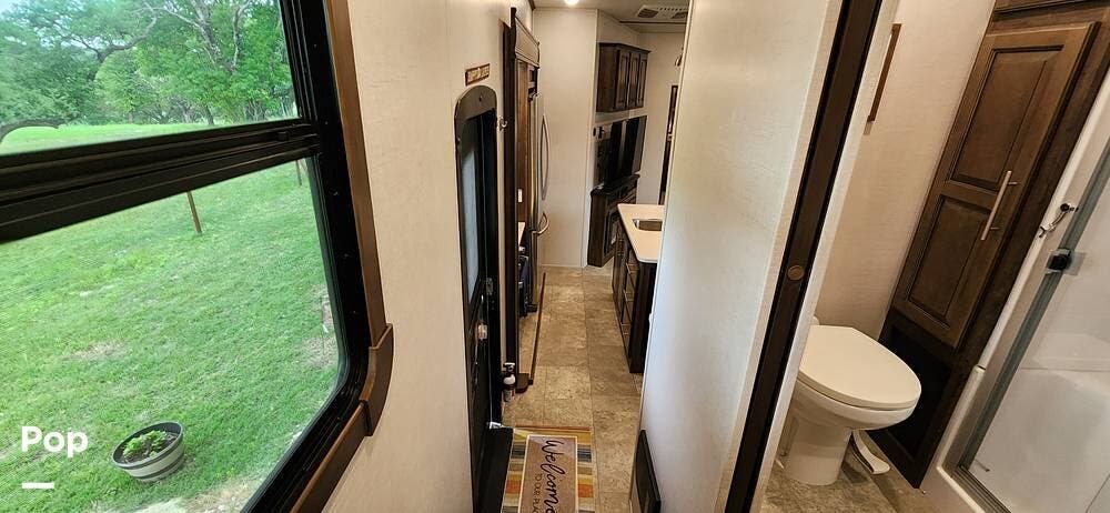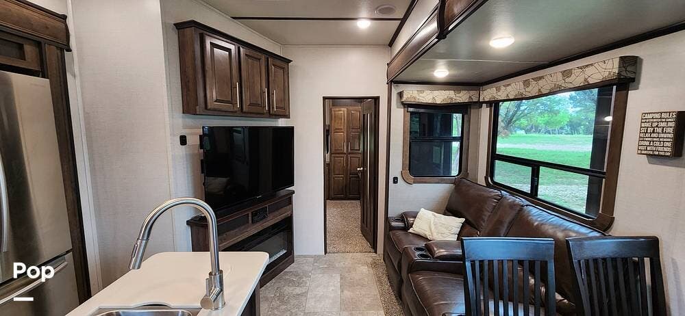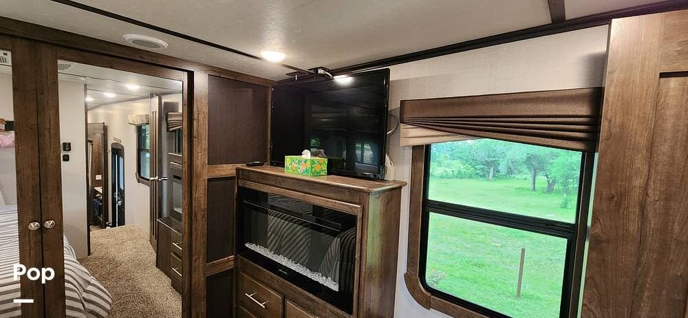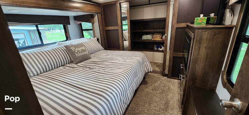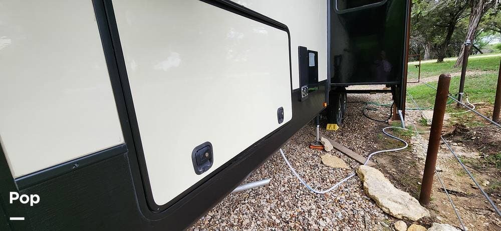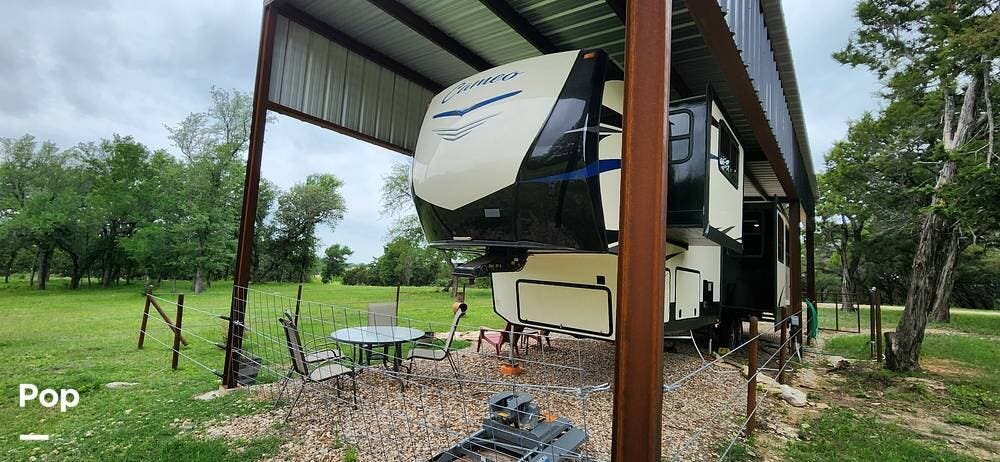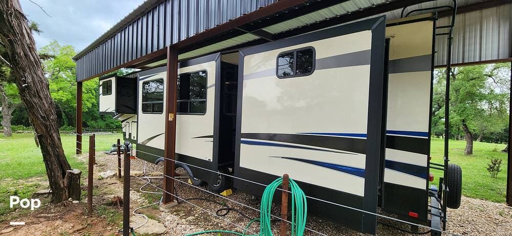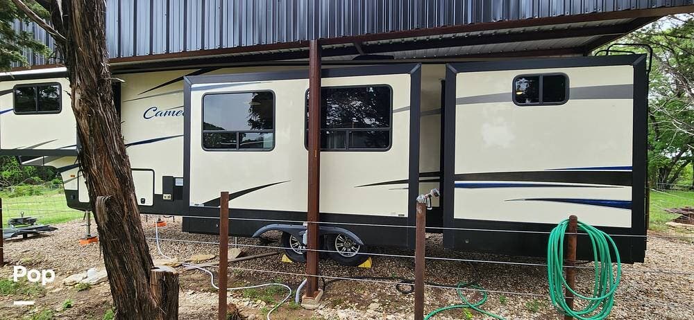This 2018 Cameo 3851BH is a 40-foot fifth wheel in Nemo, Texas. It includes a generator, a bath and a half, a washer/dryer hookup, and remote-controlled slides!