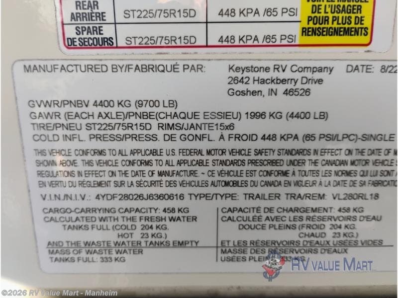 Request More Info on this 2018 CrossRoads Volante 280RL Offered for sale by RV Value Mart - Manheim