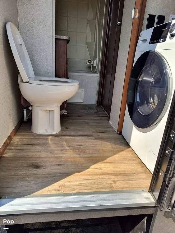 There's a large master bedroom with a queen bed, plenty of storage, a washer/dryer combo unit, and direct access to the full bathroom.