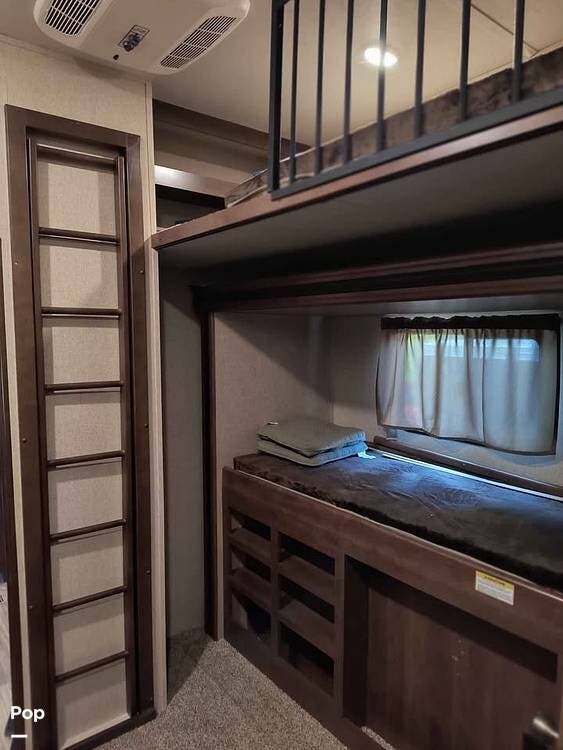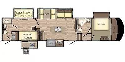 Features include a rear bunk loft with its own full bath - a kid's dream setup! This bath is accessible from the exterior as well!