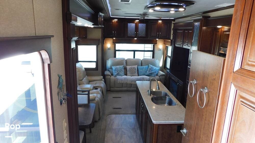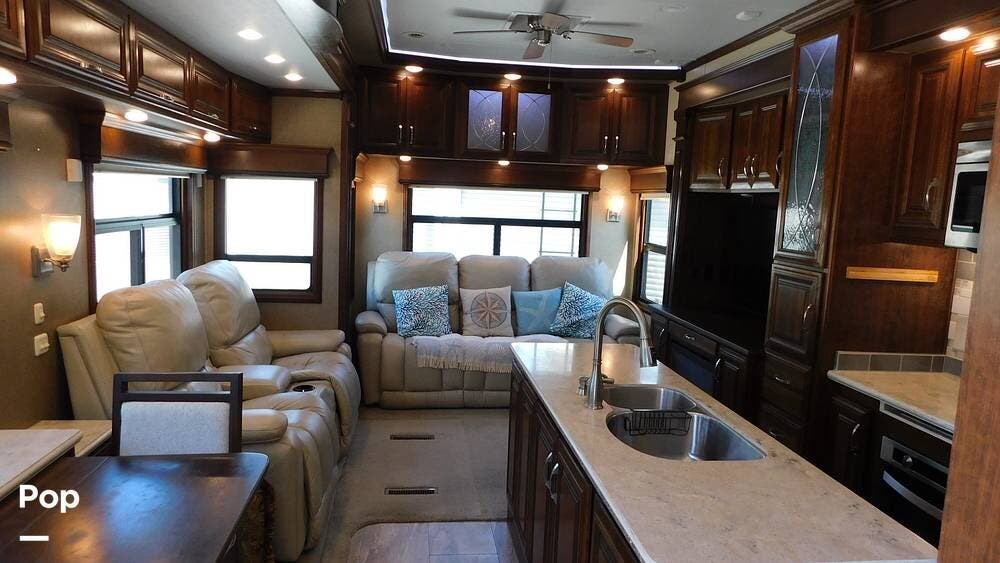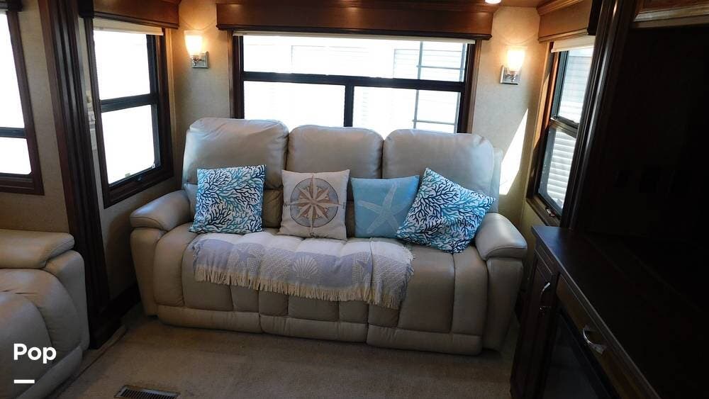 Beautiful 5th wheel loaded with the best features! Enjoy a double vanity sink, lazy boy recliners, fireplace, large stainless steel fridge, and more!