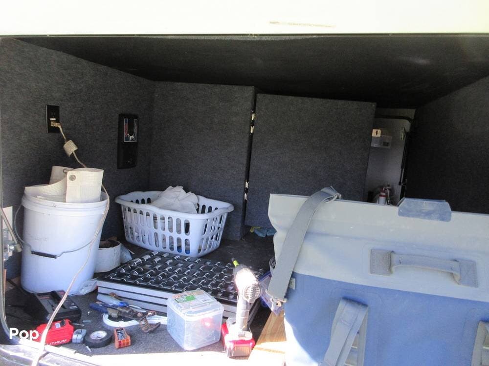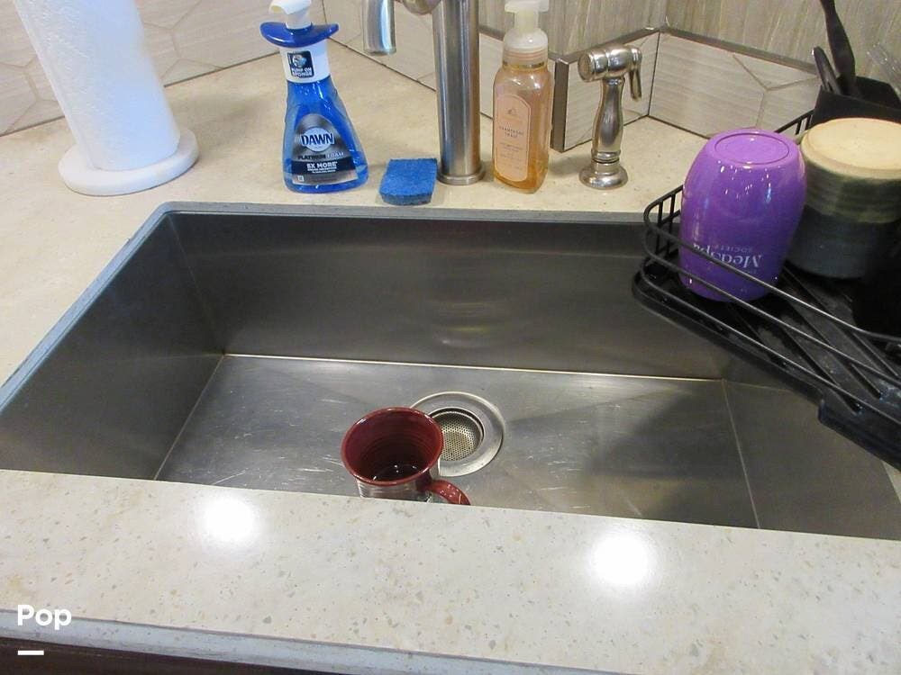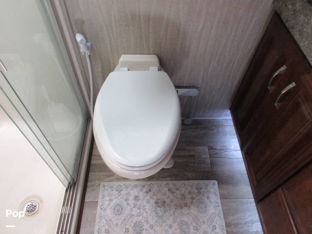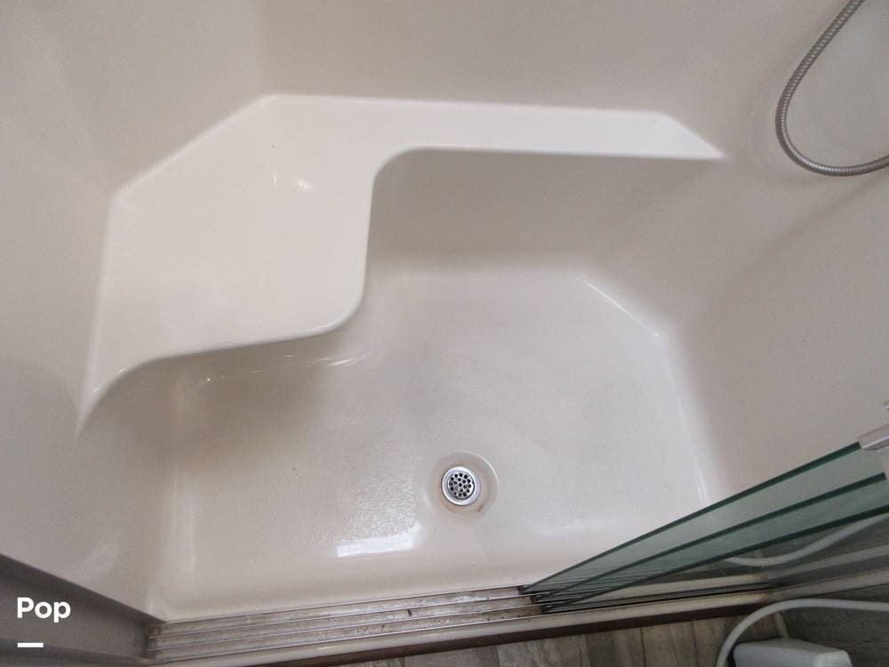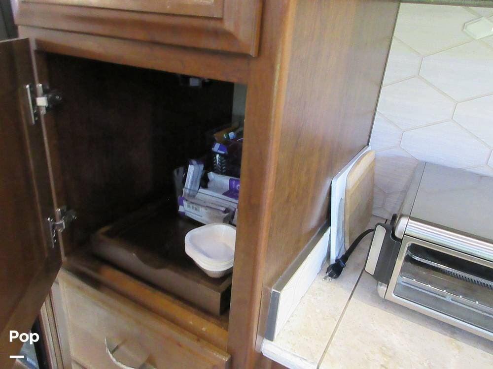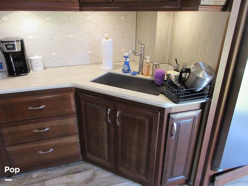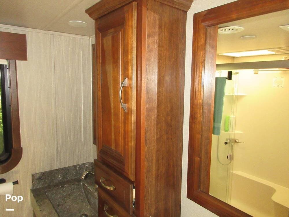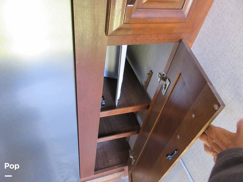 The master bedroom has a king-sized bed with a new mattress, a large dresser with eight soft-close drawers, plus overhead storage above the bed, and a TV. There is a large closet for hanging clothes and also pre-plumbed for a washer and dryer if so desired. This Mobile Suites is ready to get back "On The Road Again" now!
