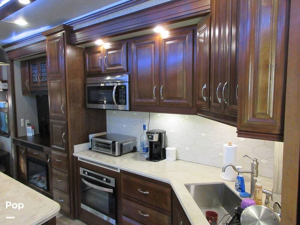 A full kitchen with a kitchen island and plenty of cabinets and storage. Solid wood cabinetry and doors throughout, soft-close drawers, extensive LED lighting, and the kitchen is chef-worthy. There are two large pantries and a stainless-steel corner-mounted sink. Refrigerator, convection microwave, a stove, and an oven. There are ample under-counter power outlets for your coffee maker and toaster oven.