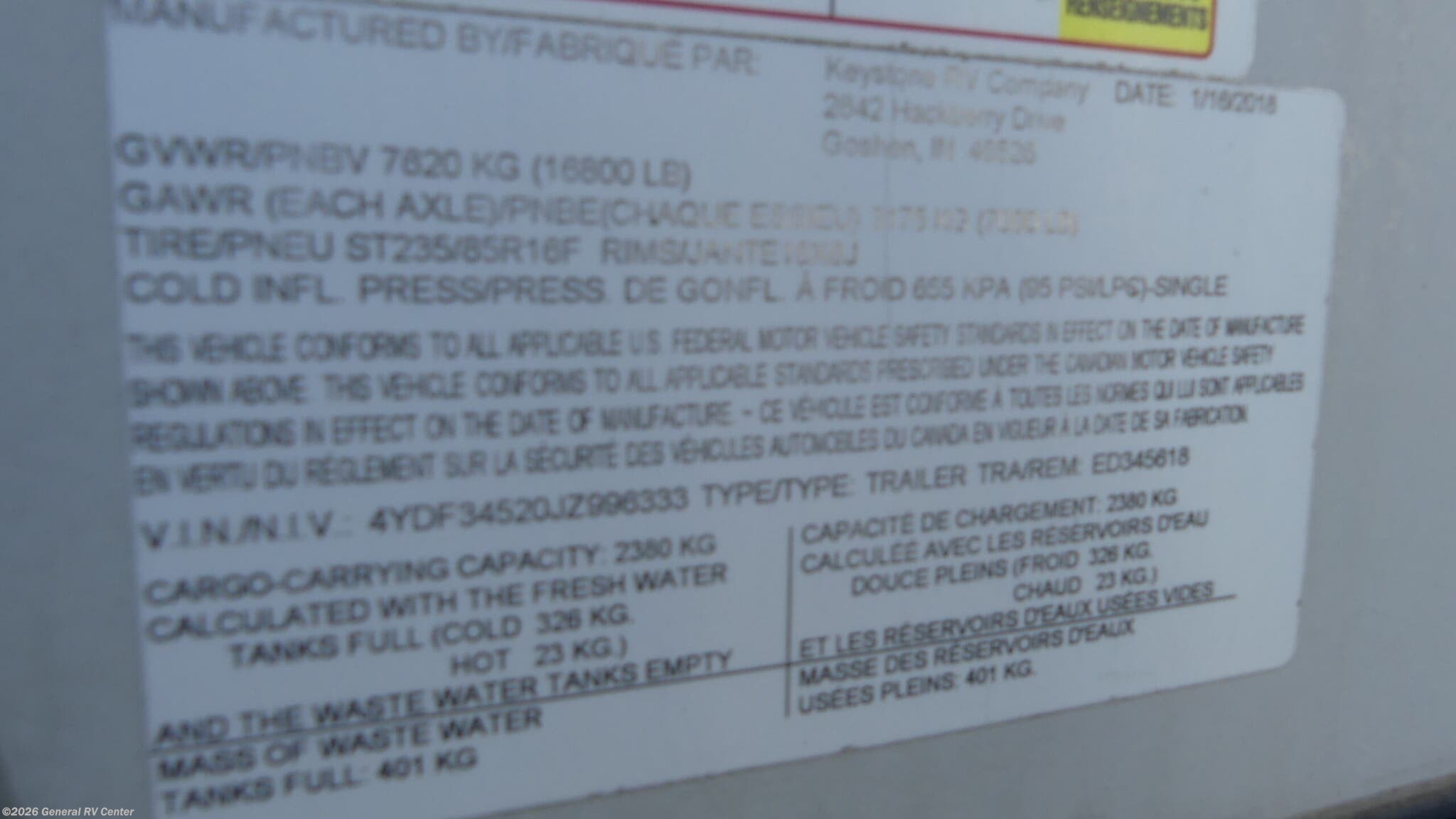 - VIN4YDF34520JZ996333