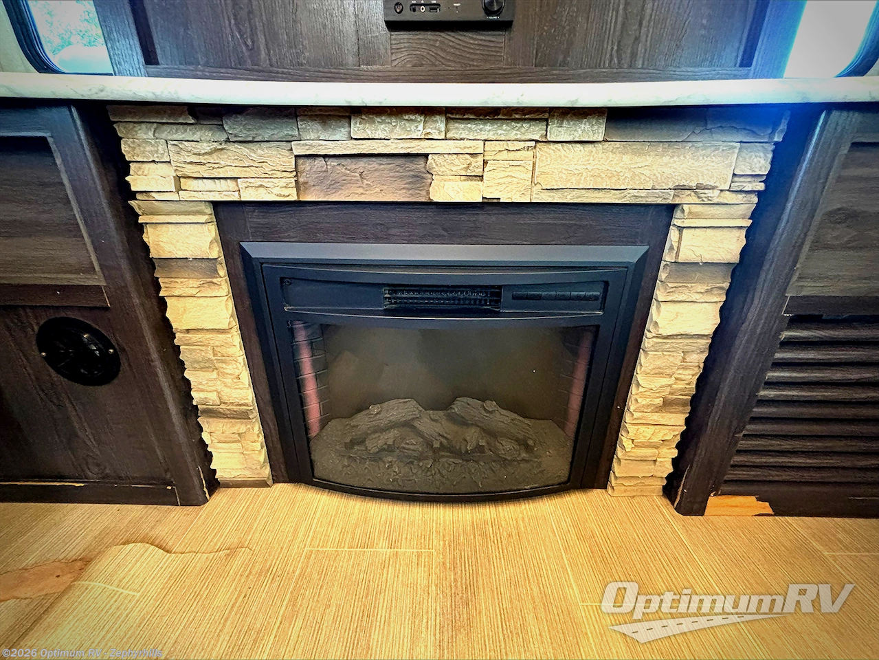 This Kodiak Ultimate travel trailer is perfect for those who love to go camping in style. Your favorite place to spend your evenings will be in the large living area, which is made possible because of two opposing slides. From the 57" theater seats to the U-shaped dinette, you will have plenty of seating space for everyone to gather together in front of the blazing fireplace as you watch a movie on the 39" LED flat screen TV. Once you've tired yourself out for the day, you can comfortably retreat to the private bedroom where you will easily drift off to sleep on the queen-size bed.