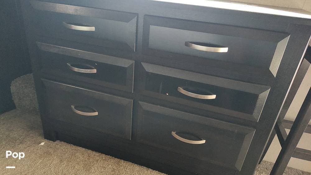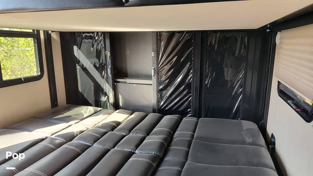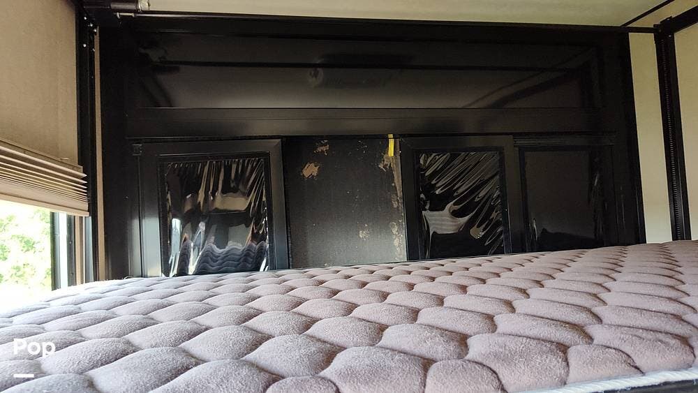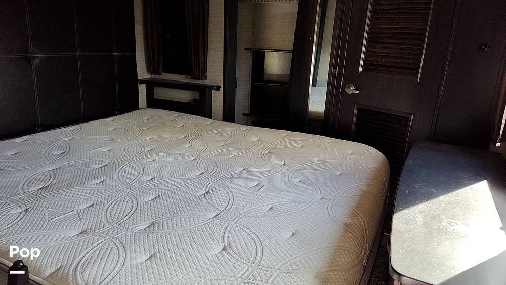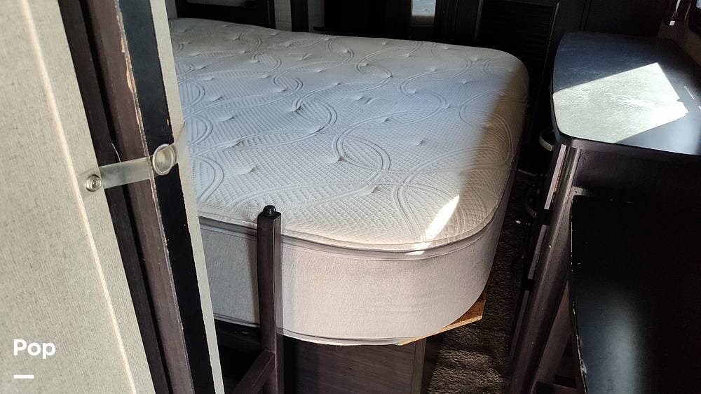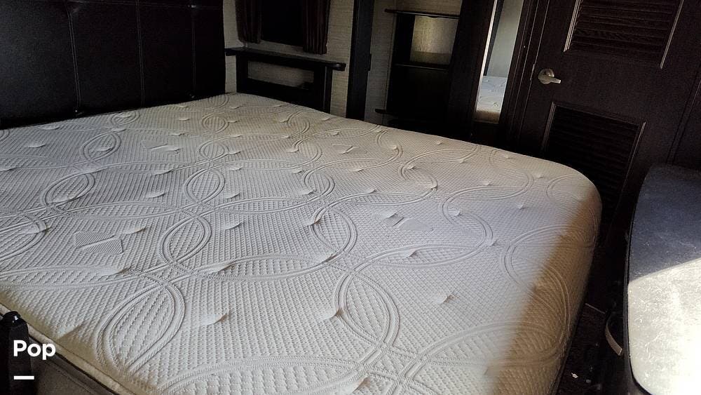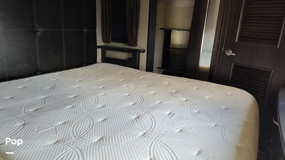 The trailer has a king-size Sleep Number bed in the master bedroom.