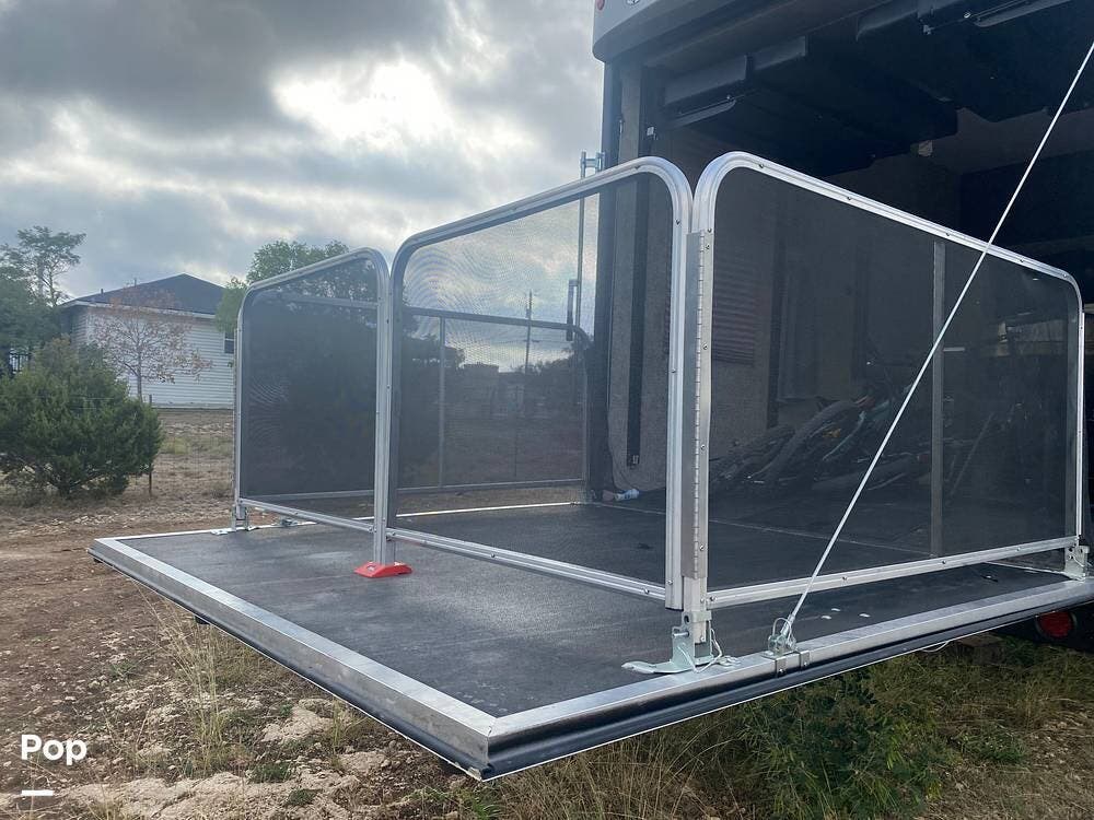 The back ramp doubles as an outside patio, the fence folds out, and you have an excellent garage extension.