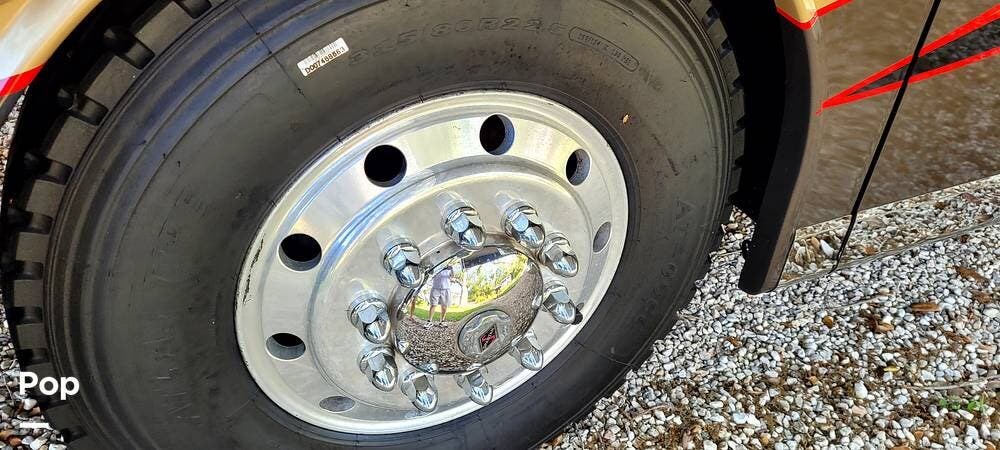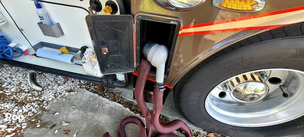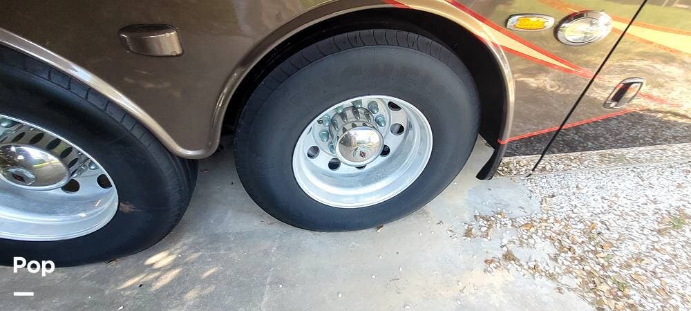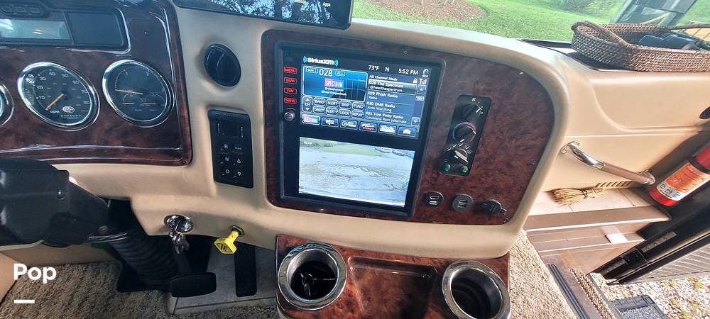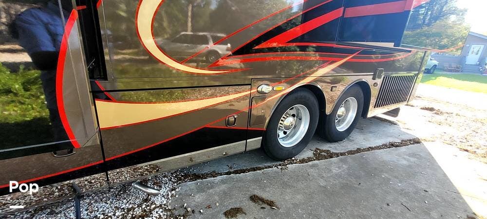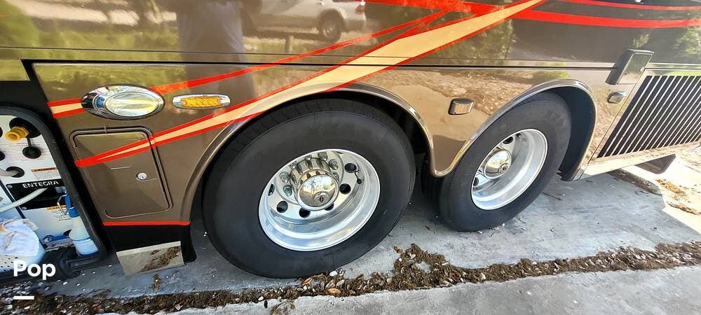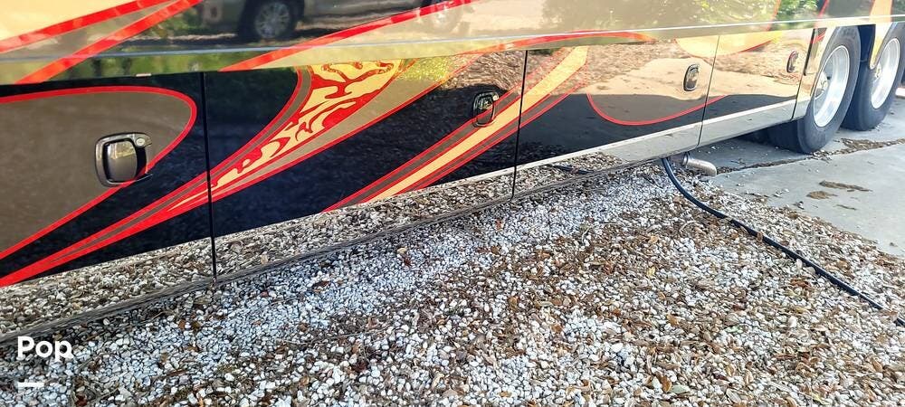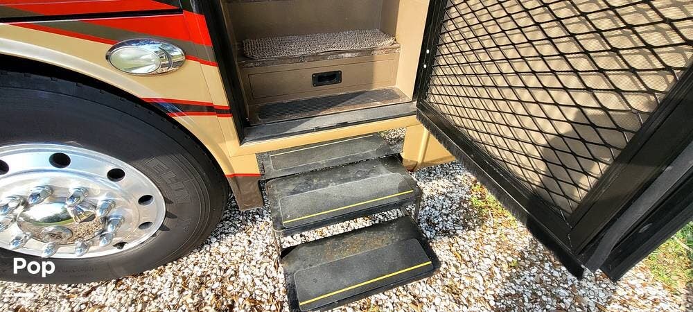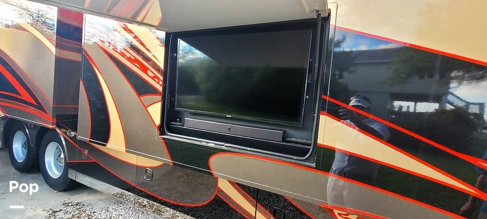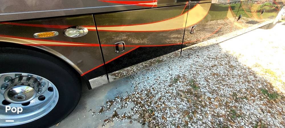 Full-body premium clear-coat paint with stainless 8" exterior trim avoids problems with vinyl graphics. Flush-mounted electric slide-outs with awnings and LED lights, traction control, upgraded Bilstein shocks, and a powered rear engine door are some of the outstanding features of this Coach.