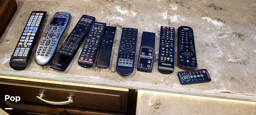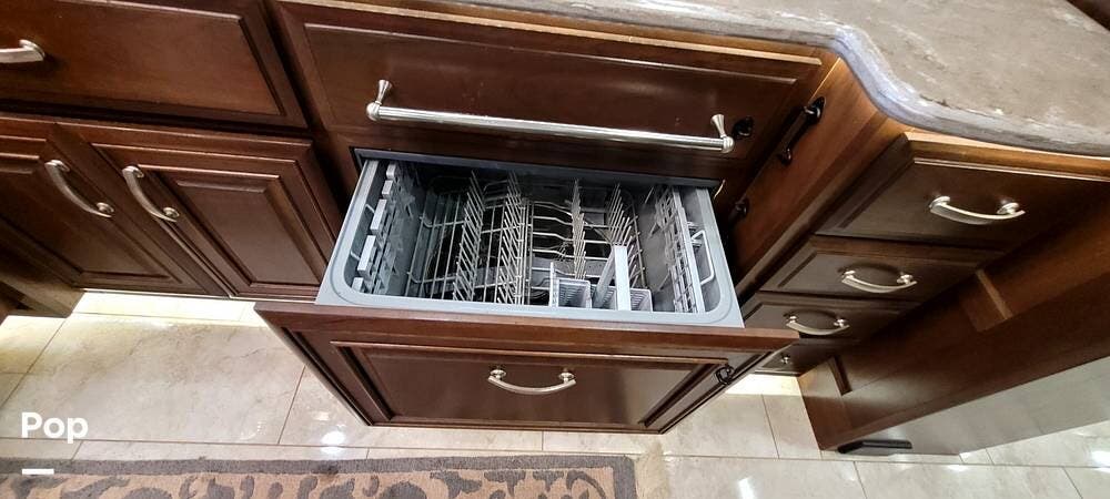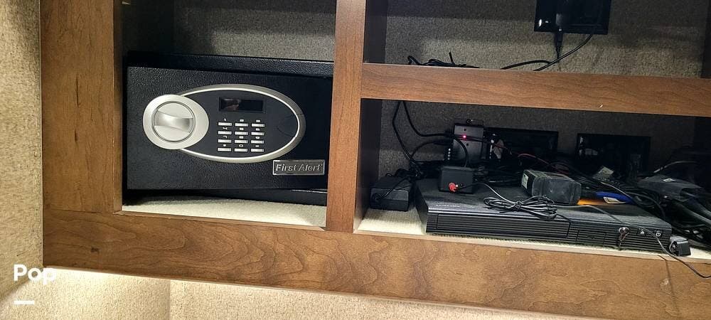 In the living area, you will notice a residential-size refrigerator, an LED electric fireplace, a dishwasher, Powered day and night shades, and a Bose SoundTouch 300 system with a soundbar, subwoofer, and surround sound. There is a hidden security safe inside the Coach.