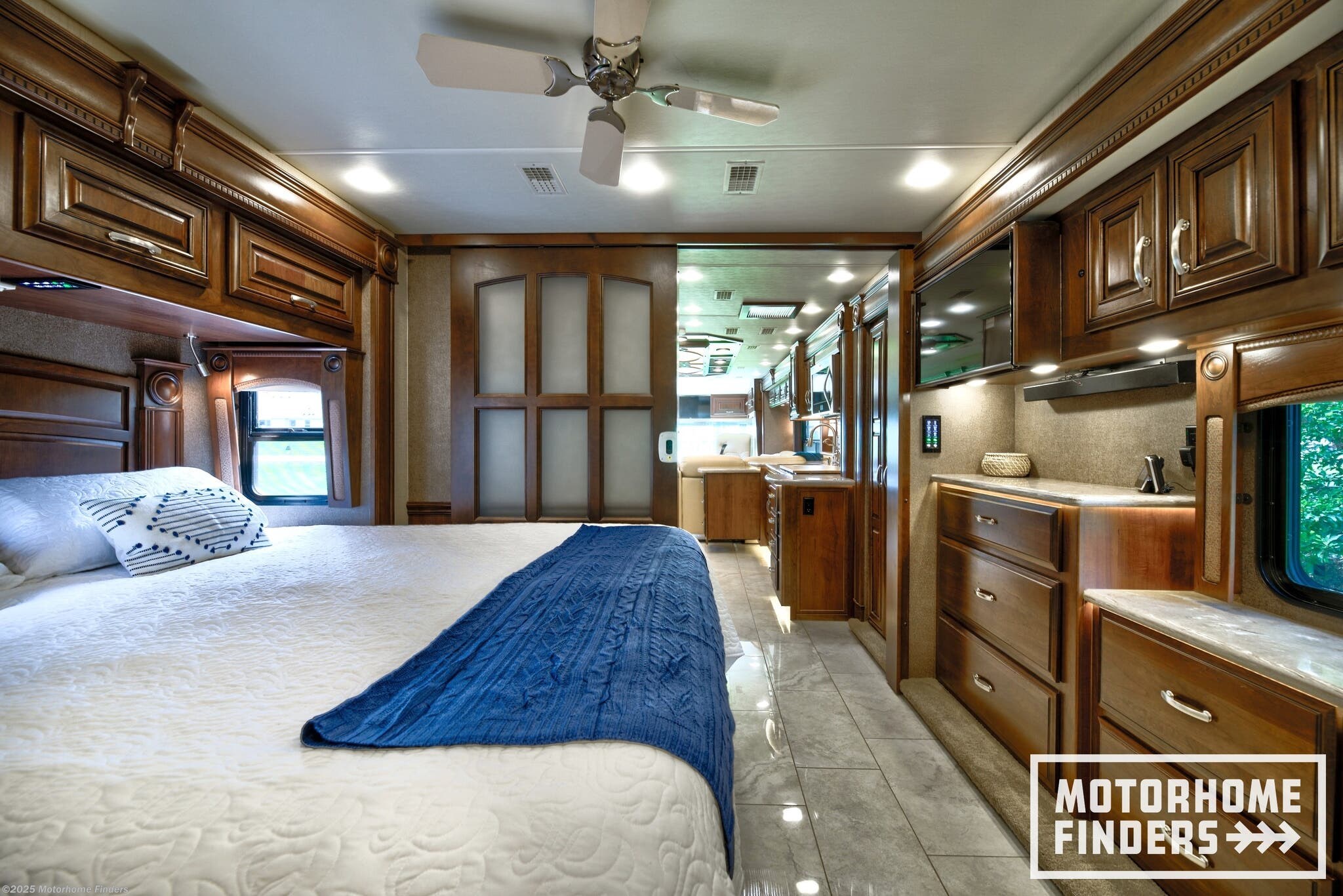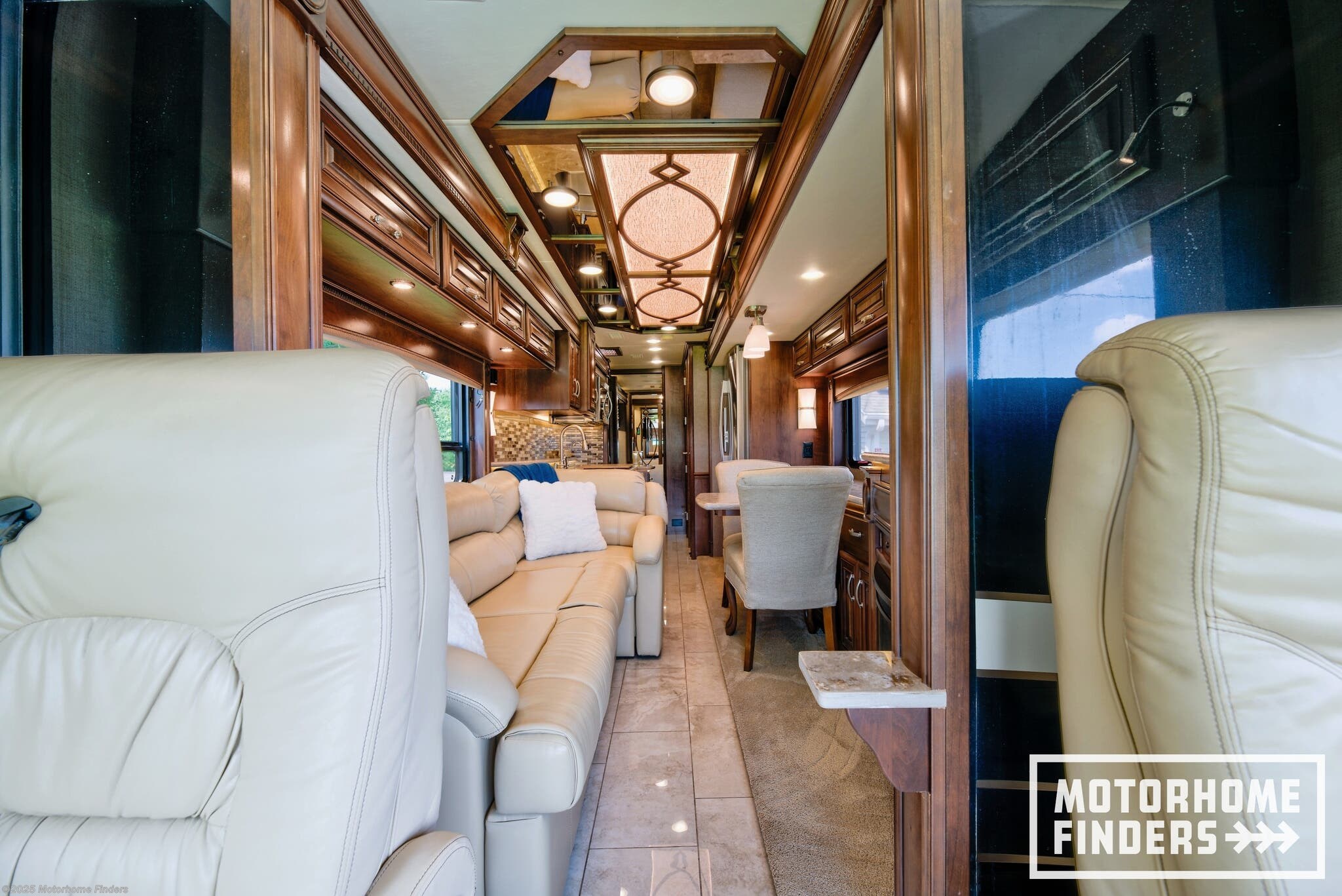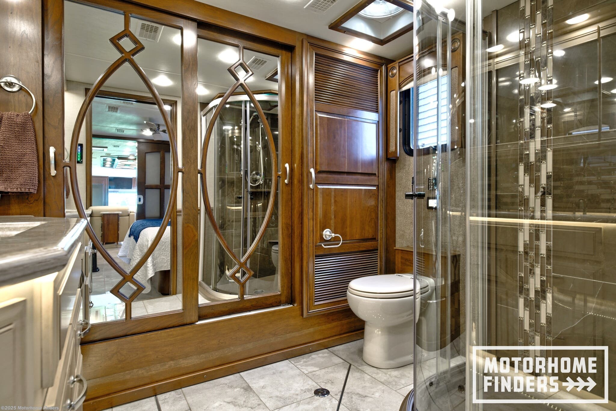 Built on the Spartan® K2 raised-rail chassis with a Cummins® ISL 450HP engine and Allison® 6-speed transmission, it blends confidence, handling, and luxury in a way few Class A diesel pushers can. Inside, you’ll find elegant residential finishes, premium entertainment, thoughtful upgrades, and the highly desirable 1 ½ bath layout—perfect for both entertaining and extended travel.