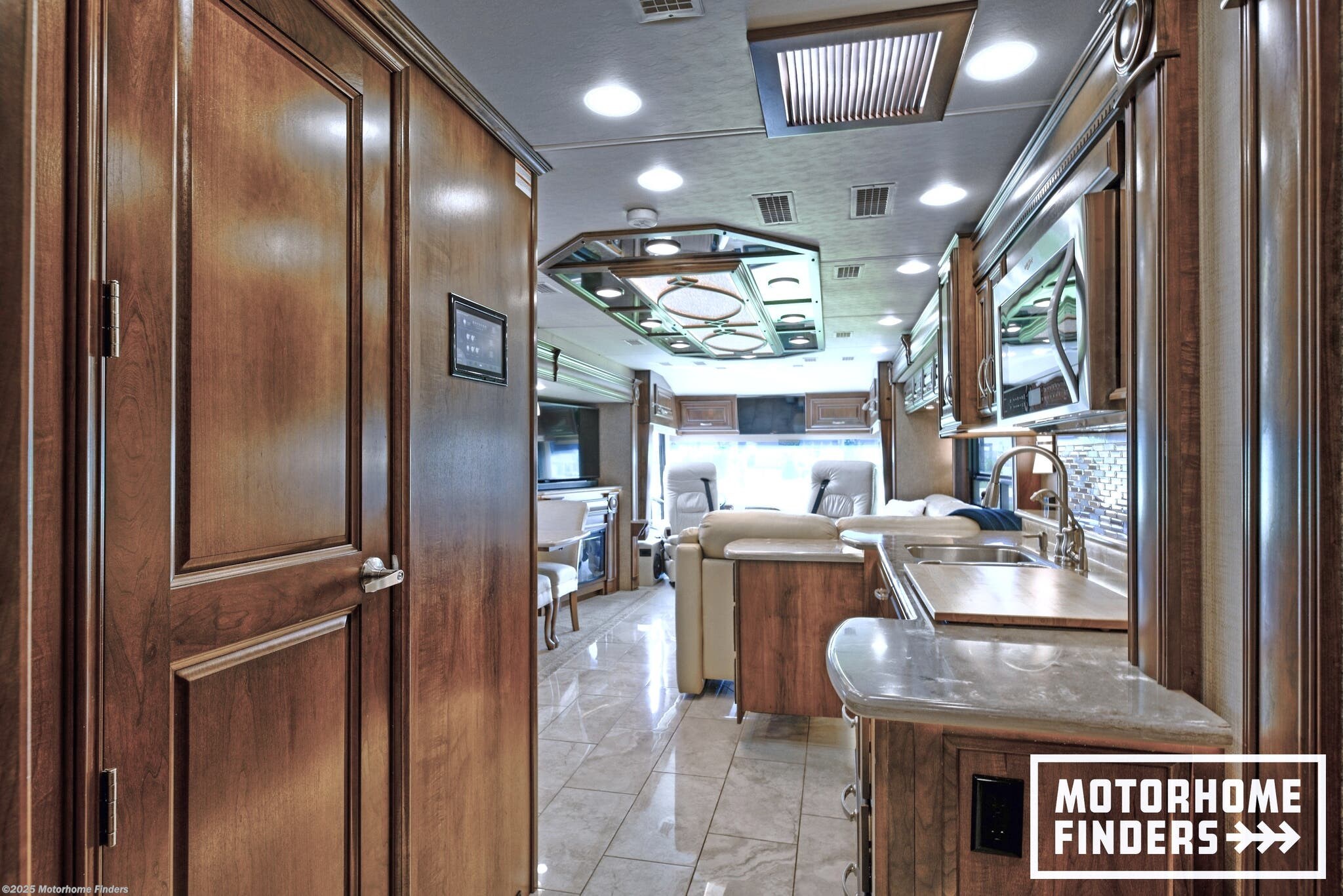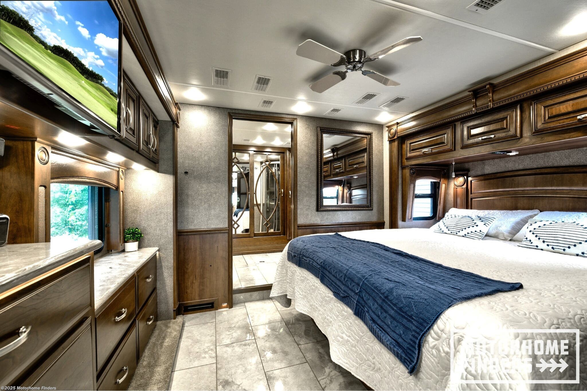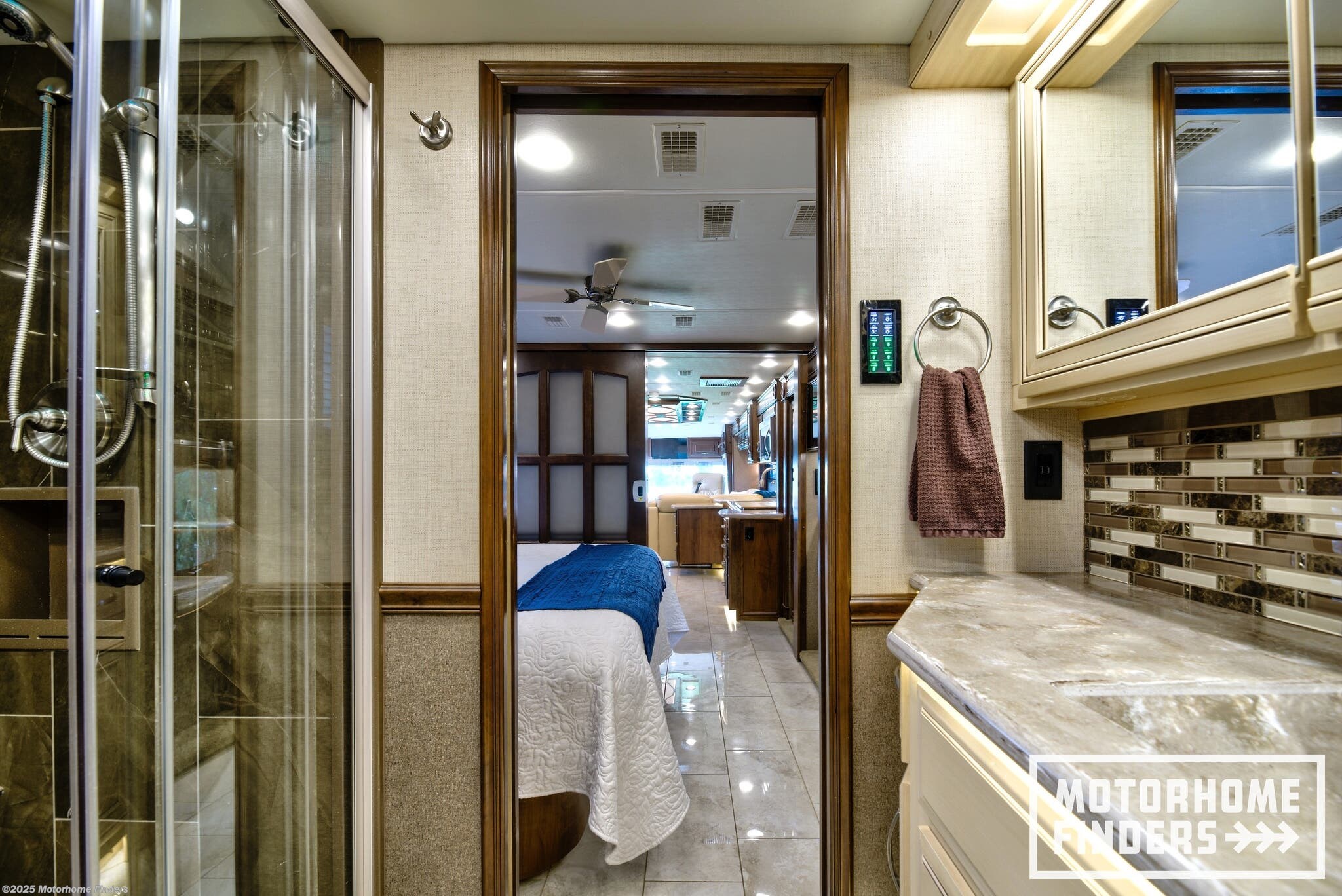 Built on the Spartan® K2 raised-rail chassis with a Cummins® ISL 450HP engine and Allison® 6-speed transmission, it blends confidence, handling, and luxury in a way few Class A diesel pushers can. Inside, you’ll find elegant residential finishes, premium entertainment, thoughtful upgrades, and the highly desirable 1 ½ bath layout—perfect for both entertaining and extended travel.