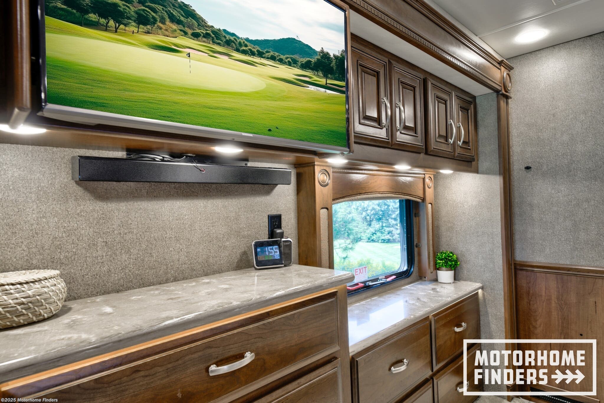 Backup Camera, CD Player, CO Detector, DVD Player, Fire Extinguisher, GPS Navigation, Heat Pump, In-Motion Satellite Dish, Security System, Smoke Detector, Surround Sound System, TV -