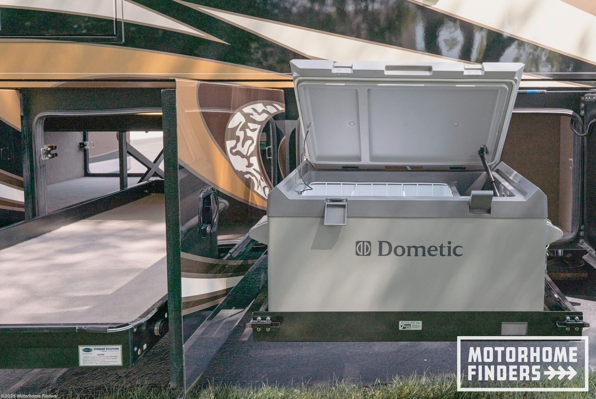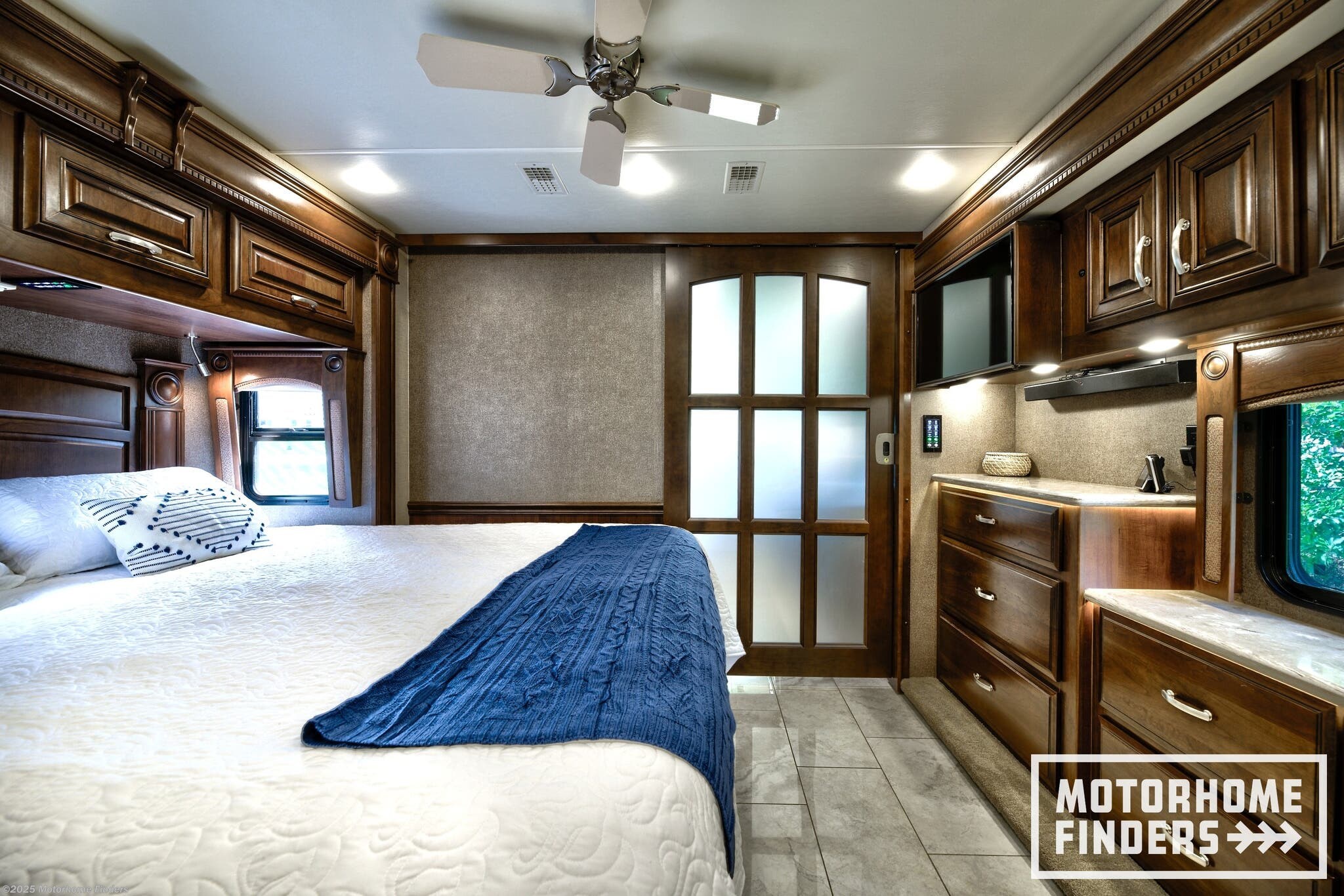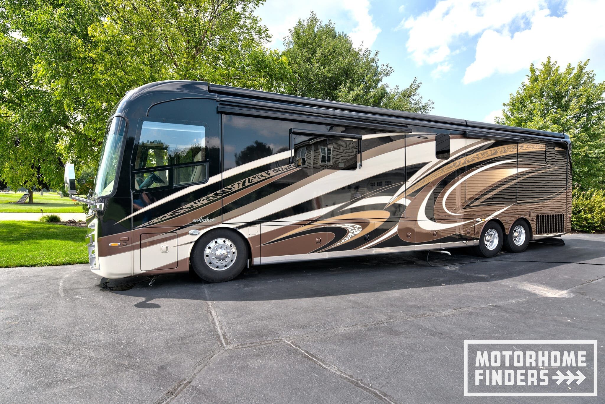 This Anthem 44B is more than just a motorhome—it’s a well-loved and carefully protected flagship coach that blends residential comfort, cutting-edge technology, and strong performance. With stand-out features like the rich chocolate exterior, climate-controlled storage history, 1 ½ bath layout, solar charging, exterior refrigerator/freezer, Magna Shades, Blue Ox tow system, Whirlpool washer & dryer, and the option of a fully equipped 2017 Explorer Limited tow vehicle, it’s ready to deliver luxury, security, and reliability to its next owner.