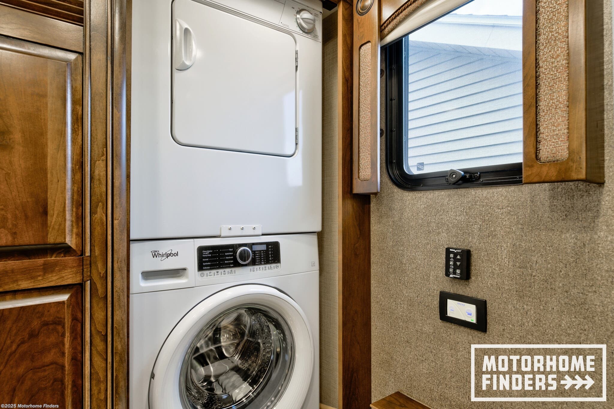 Whirlpool® stacked washer & dryer (not combo) – residential-grade laundry capability on the road.