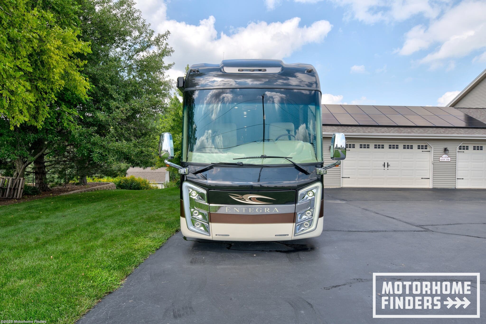 This 2018 Entegra Anthem 44B is the kind of motorcoach discerning buyers search for but rarely find. With its eye-catching rich chocolate exterior color scheme that draws compliments everywhere it goes, paired with a no-smoking, no-pets history, this Anthem stands out not only for its good looks but also for the way it has been cared for. Always stored in climate-controlled indoor storage when not in use, it has been shielded from the elements and meticulously maintained, ensuring it looks and performs as close to new as possible. Despite its current location the RV has NOT been drivin in the roadsalt nor has it been subjected to the Salt Air during it's travels. Priced to sell and is a great value for the condition and the features of the RV.