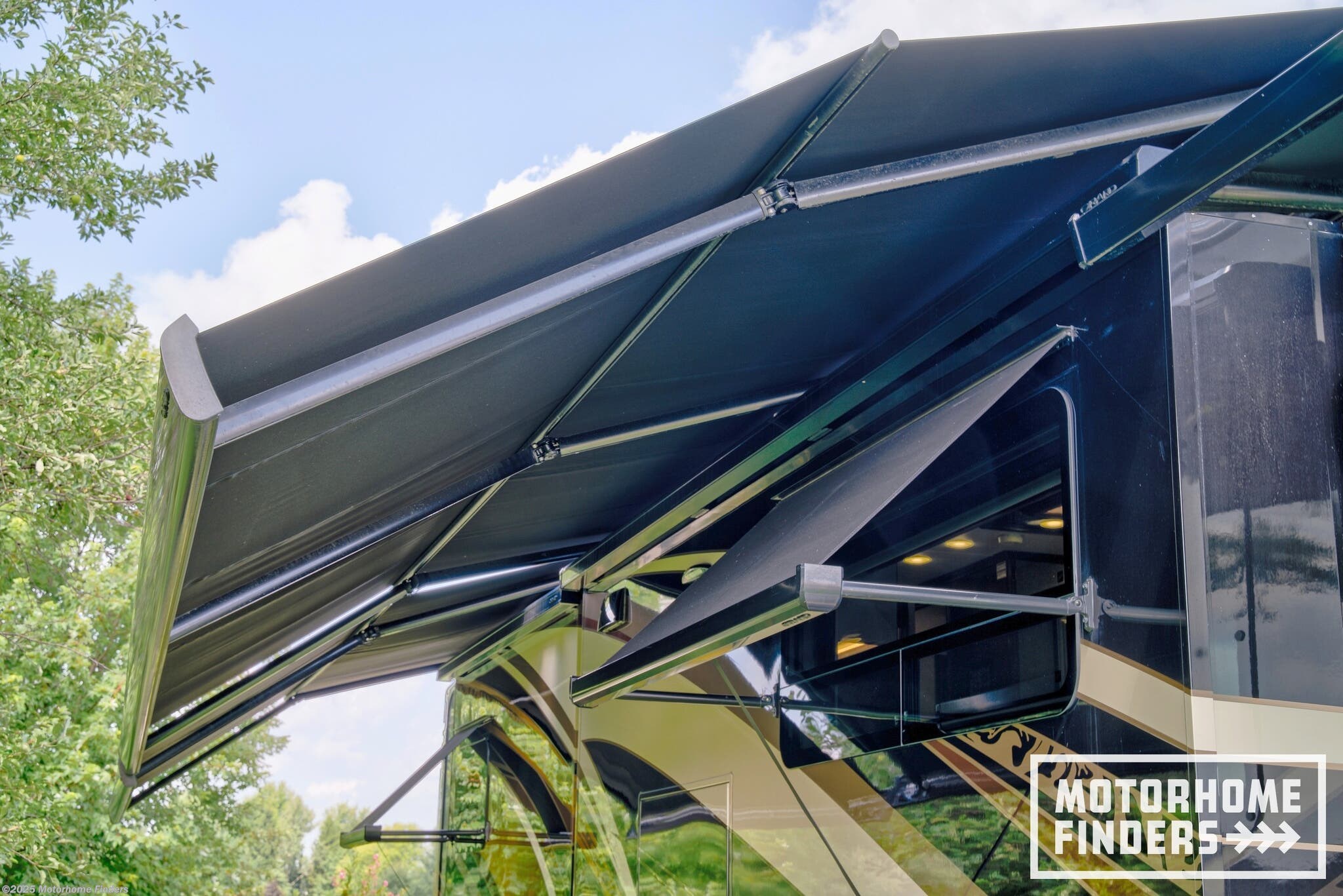 Air Assist Suspension, Alloy Wheels, Automatic Leveling Jacks, Awning, Backup Monitor, Black Tank Flush, Exterior Speakers, External Shower, Full Body Paint, Hitch, Leveling Jacks, Outside Entertainment Center, Pass Thru Storage, Power Awning, Power Entrance Step, Power Roof Vent, Roof Vent, Screen Door, Side View Cameras, Skylight, Slideout, Slide-out Awning -