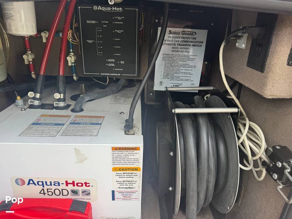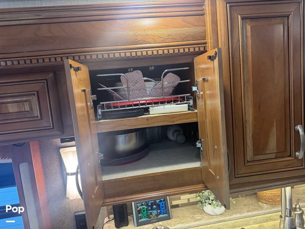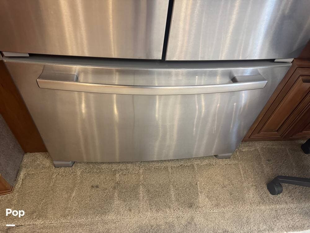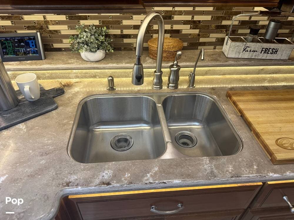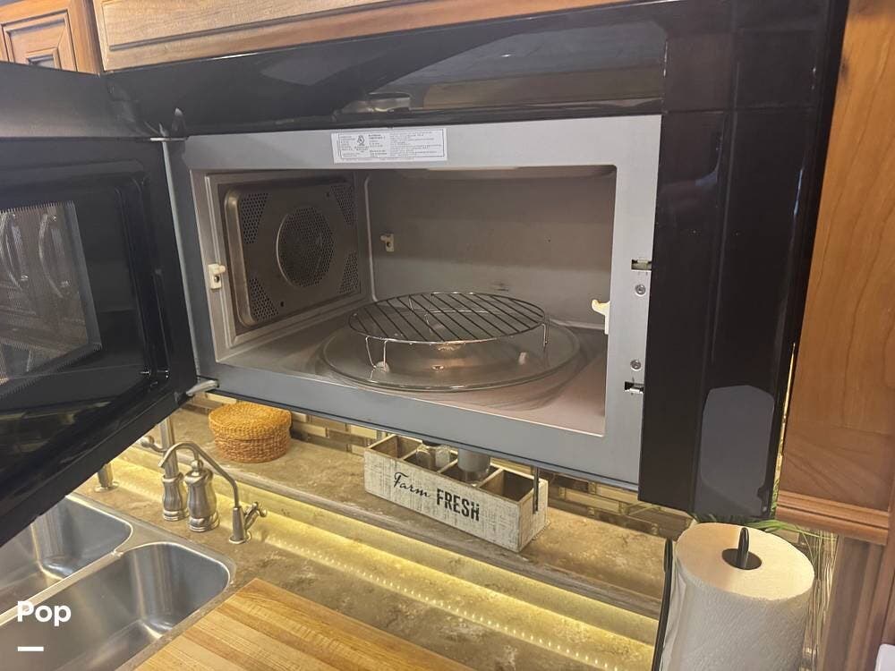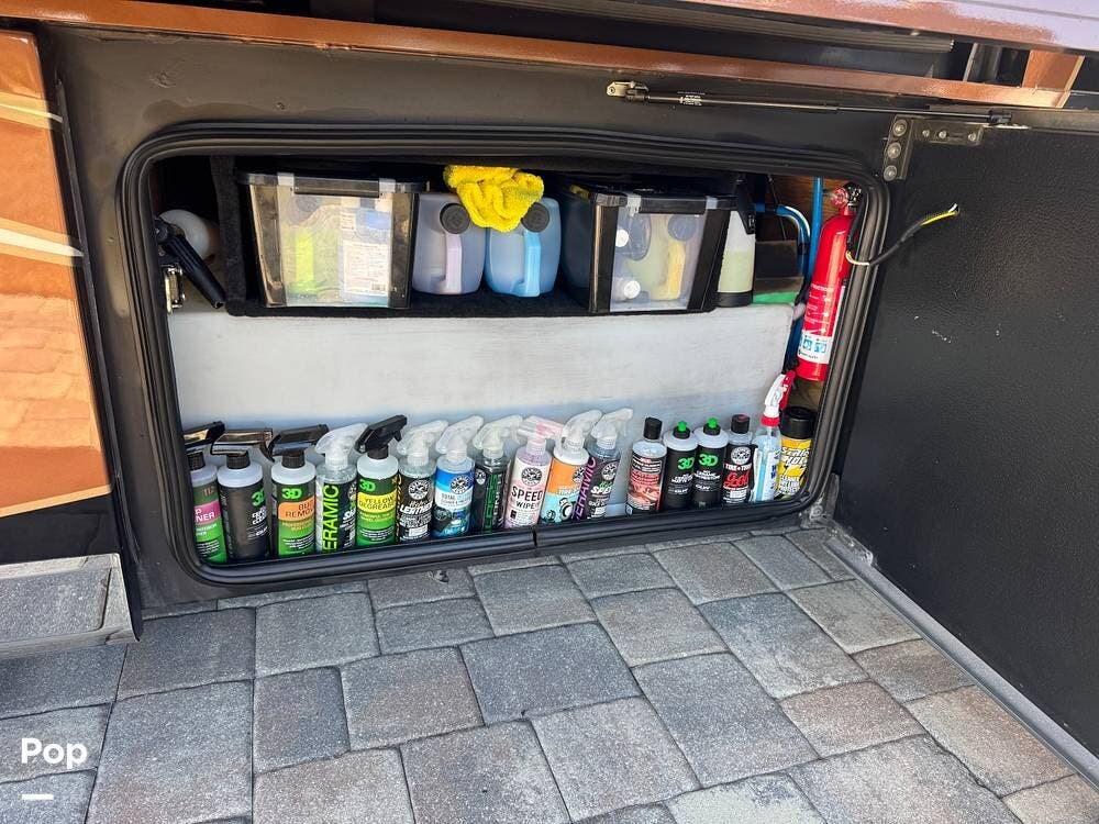 The gourmet kitchen is built for serious cooking, with solid-surface countertops, a residential refrigerator, an induction cooktop, a convection microwave, a dishwasher, Aqua Hot for instant hot water and abundant pantry space. Whether preparing a quick breakfast or a full dinner, you'll appreciate the thoughtful layout and upscale appliances.