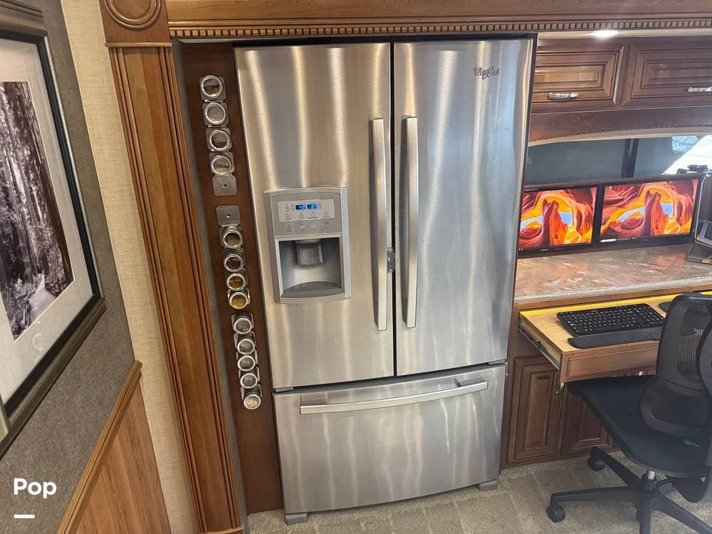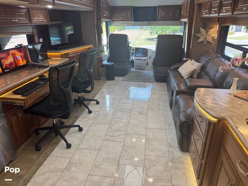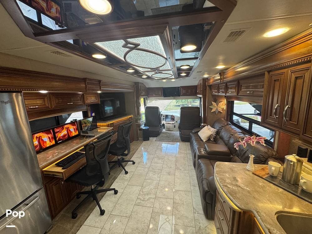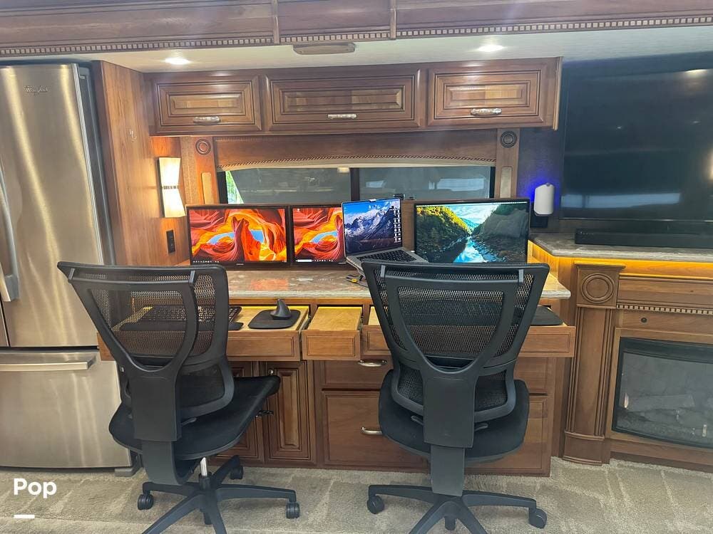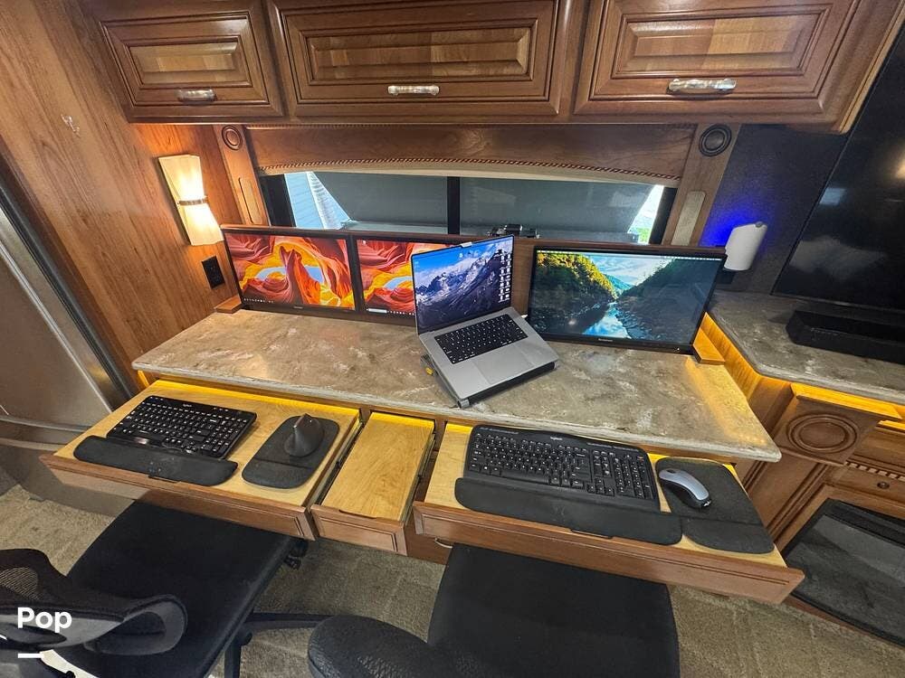 One very unique feature of this coach is the custom, professionally installed workstation. The photos in the ad show how it can easily be changed from a dining area to a workstation, quickly and easily.