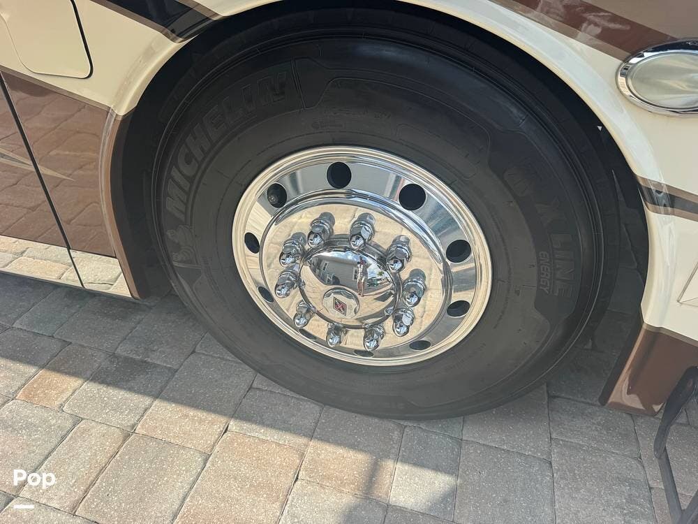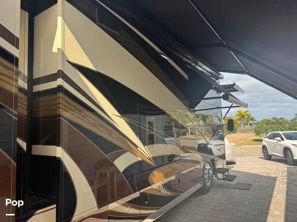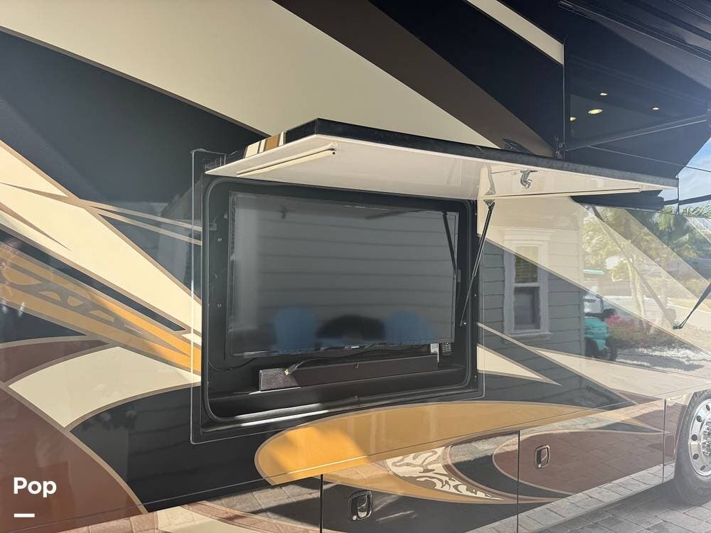 Outside, enjoy a massive pass-through basement heated storage for all your gear, a power awning, exterior entertainment center, and Girard awnings for shade and comfort. Whether parked at a luxury resort or overlooking a remote mountain vista, the Anthem sets the stage for unforgettable experiences.