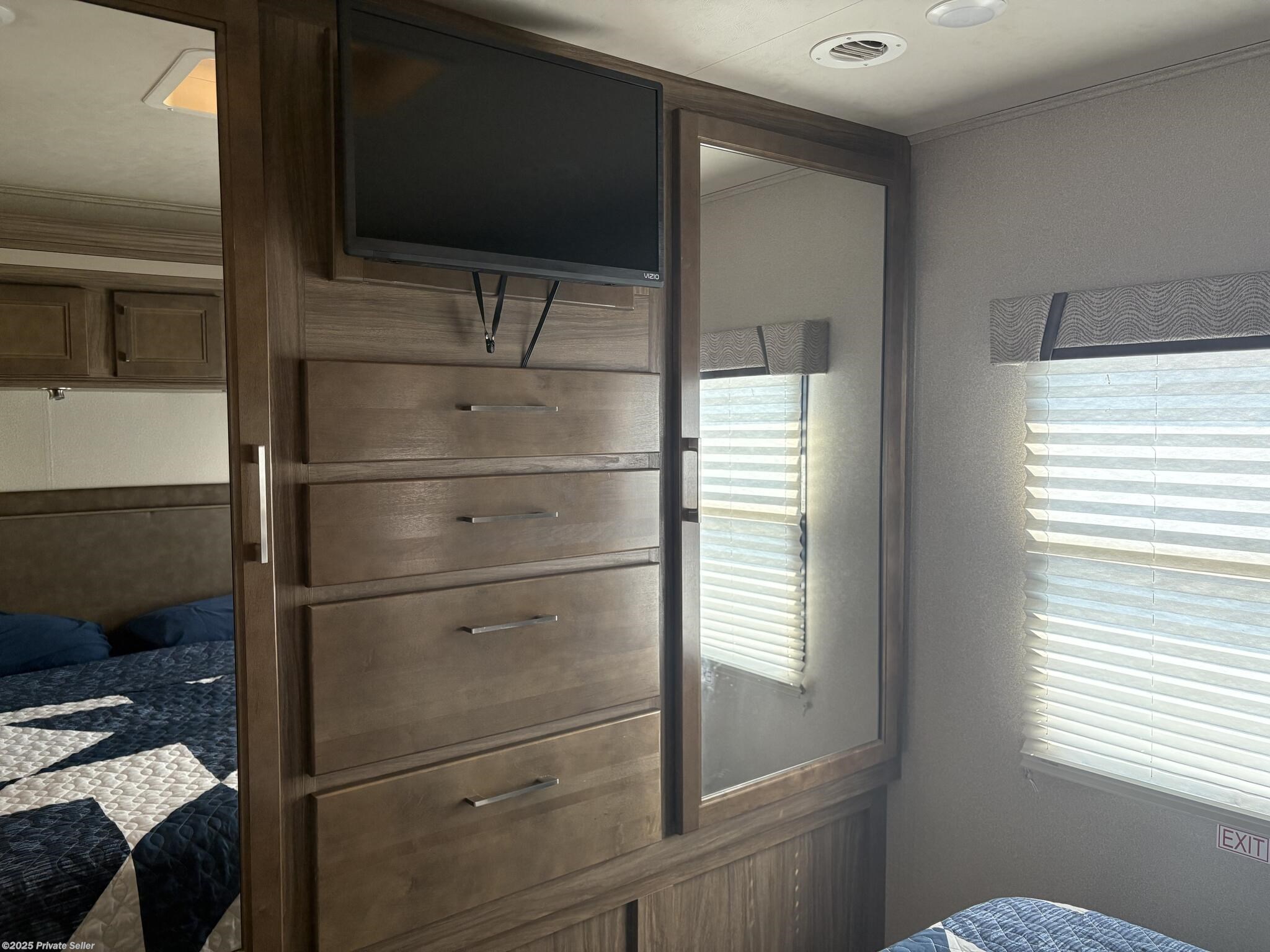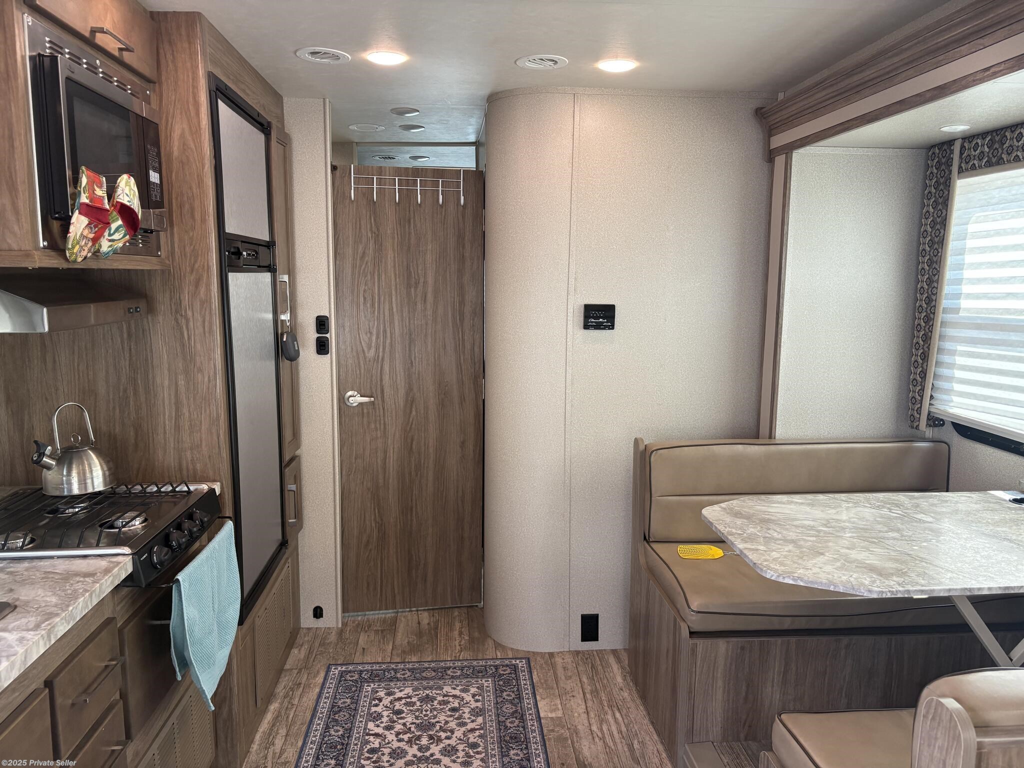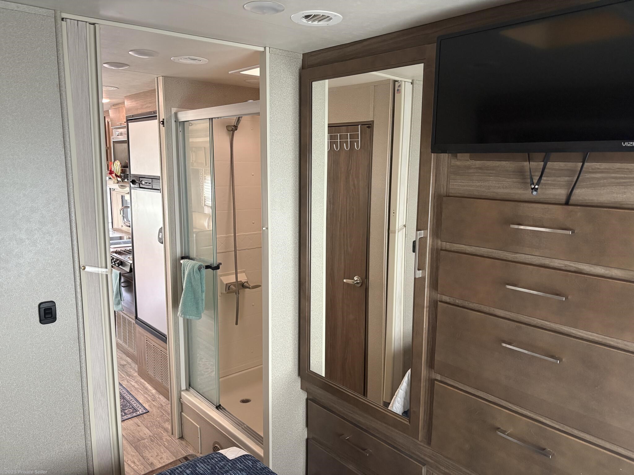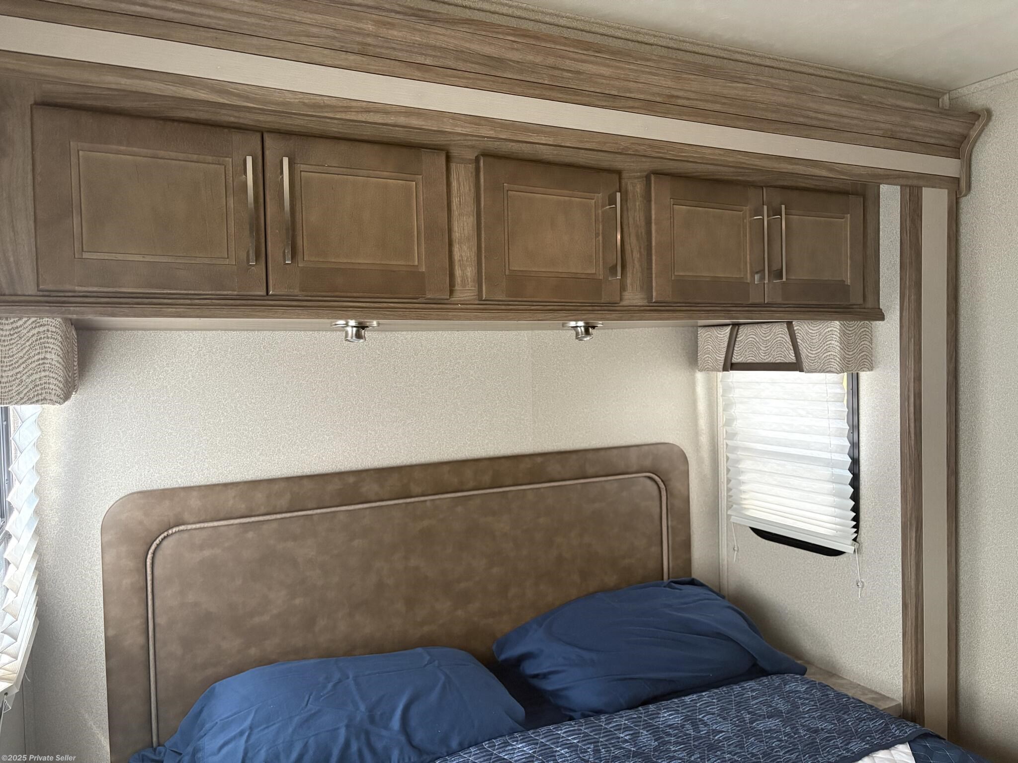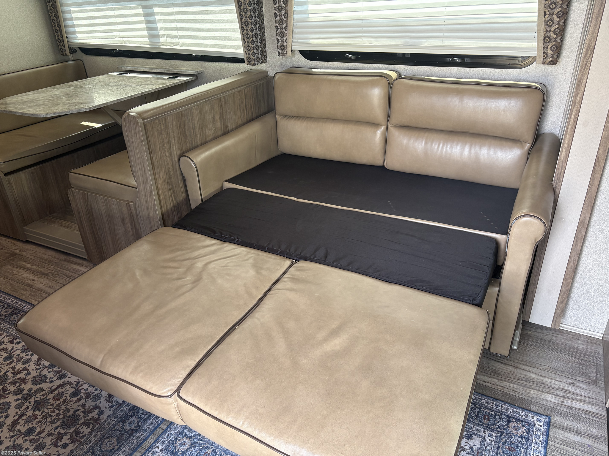 The 2018 Entegra Coach Odyssey 29V is a luxurious Class C motorhome that offers both style and functionality for your travels. With only 22,590 miles on the odometer, this vehicle is practically brand new and ready to hit the road for your next adventure. The Entegra Coach brand is known for its high-quality craftsmanship and attention to detail, and the Odyssey 29V is no exception. All wood cabinets and leather upholstery. This V-10 engine has plenty of power and with a 55 gal gas tank, your distance is 400 - 450 miles depending upon speed. Power panel has tank gauges, inverter, and propane backup generator start switch. This motorhome is the perfect blend of comfort and convenience, with a spacious interior layout that maximizes living space and storage options. The kitchen comes fully equipped with modern appliances, including a refrigerator, stove, and microwave, making it easy to whip up delicious meals on the go. The living area features a cozy dinette and sofa, perfect for relaxing or entertaining guests. When it's time to rest, the bedroom offers a comfortable queen-sized bed and plenty of storage for your belongings. The bathroom includes a shower, sink, and toilet, ensuring you have all the comforts of home while you're on the road. The exterior of the Odyssey 29V is just as impressive, with a sleek design and durable construction that can handle any terrain. Whether you're planning a weekend getaway or a cross-country road trip, the 2018 Entegra Coach Odyssey 29V has everything you need to make your journey memorable. Don't miss out on the opportunity to own this top-of-the-line Class C motorhome and experience the ultimate in luxury travel. With its low mileage and pristine condition, this vehicle won't last long so schedule a test drive today and see for yourself why the Entegra Coach Odyssey is the perfect choice for your next adventure. There are many extras included: New memory foam mattress, Over Cab bed includes cargo netting for child safety and ladder. Engine battery new, RV battery new. Sleeps 8. Two Slides. Excellent condition. Solid wood cabinets and leather upholstery.