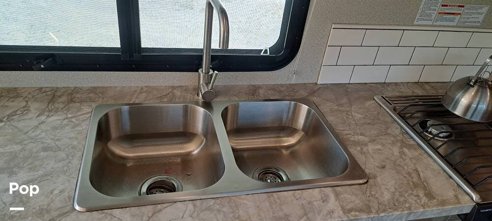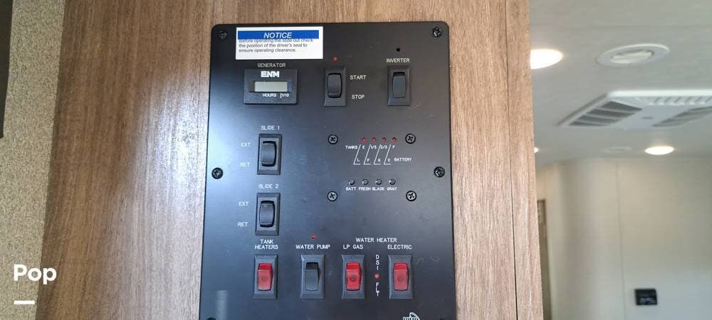 Inside, it offers around 7 feet of headroom and includes two power slideouts to expand living space. Under the hood is a Triton 6.8L V-10 gasoline engine paired with a 6-speed TorqShift automatic transmission.