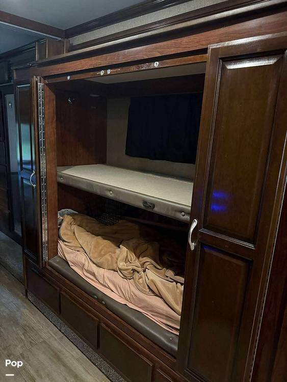 A highlight of the 36H model is its versatile sleeping arrangements, which include a king-size master bed, a set of bunks, a convertible dinette, and a drop-down overhead bed, accommodating up to 6 people.