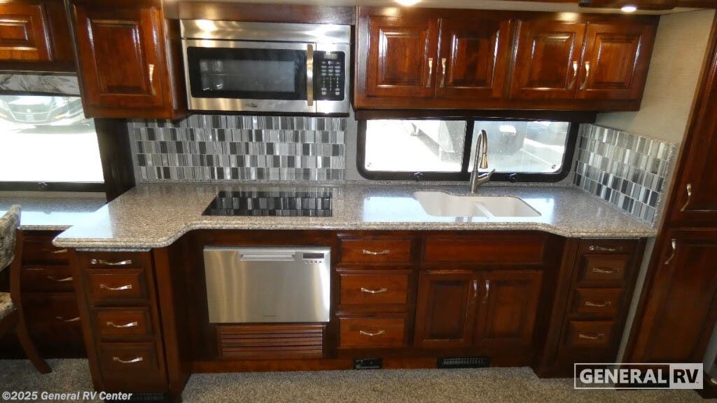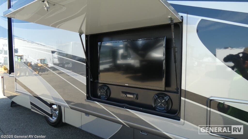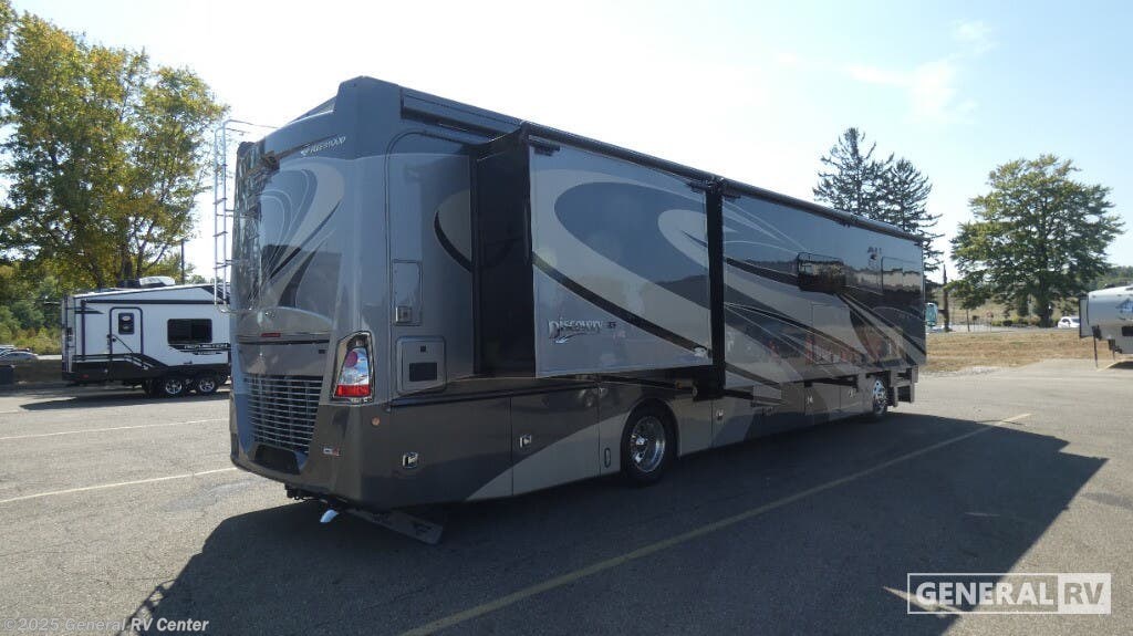 Fleetwood Discovery class A diesel motor home 39F highlights: Quad Slide Outs Stackable Washer/Dryer 49" LED TV L-Transformer Sofa For your next cross-country road trip you will want this beautiful Discovery 39F class A motor home. When you are ready to relax then come sit and enjoy the comfortable 95" x 70" L-transformer sofa or lounge chair. Along the interior wall there is a 49" LED TV plus an electric fireplace. Throughout this model there is plenty of room with the quad slide outs, and in the rear bedroom you will find a king bed, a full length closet, and a stackable washer/dryer so you can easily keep up with your laundry while you are away from home and more! Are you ready to travel in style and comfort? Well, come step onboard the Fleetwood Discovery where you will immediately feel at home. There are also polished solid-surface countertops, a 22 cu. ft. refrigerator, and a tile backsplash in the kitchen. Along the exterior there are bus-style side swing luggage doors, an entertainment center with a 32" LED HDTV, and a power awning with LED light strip and wind sensor react. Each model is also equipped with a Firefly Integrations control panel and a central vacuum system which allows you to easily clean up, plus so much more!