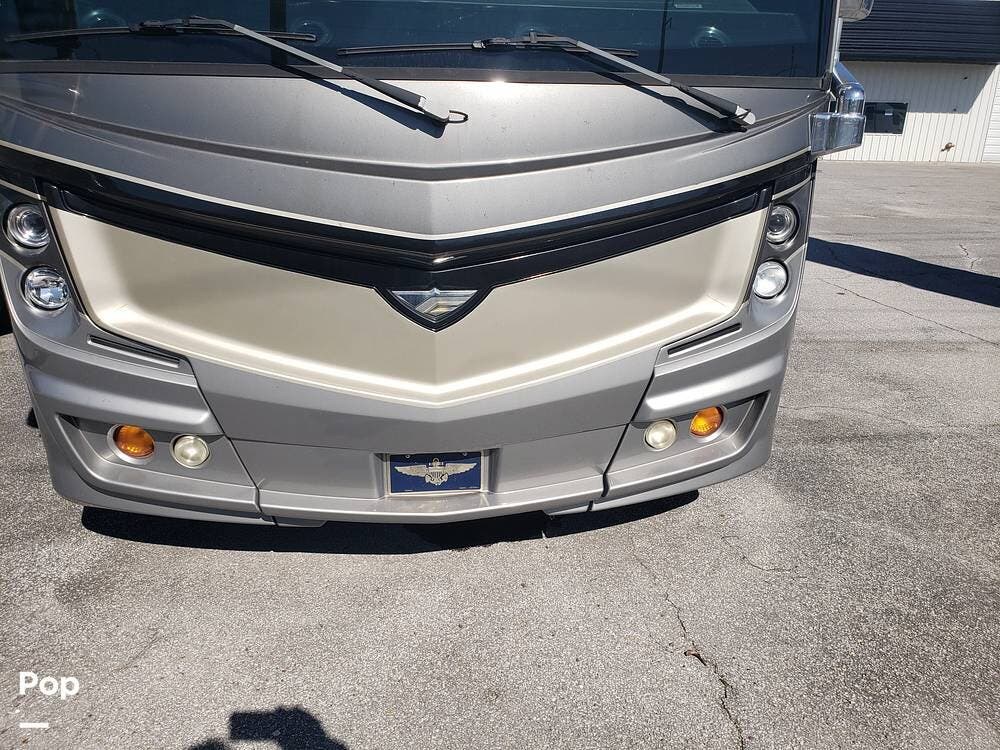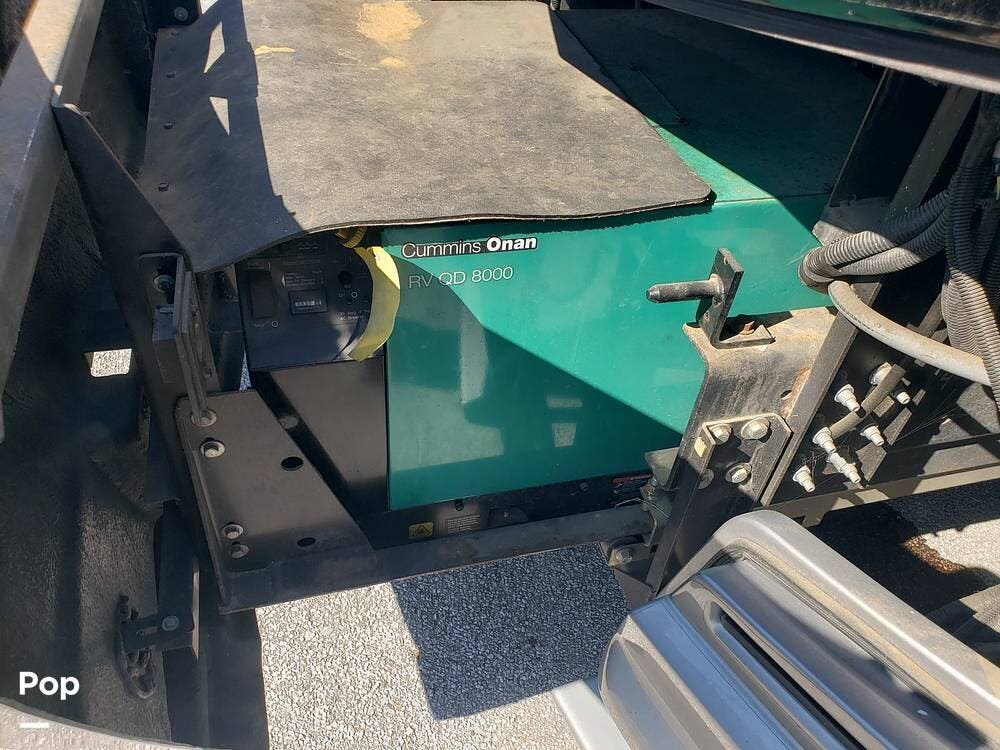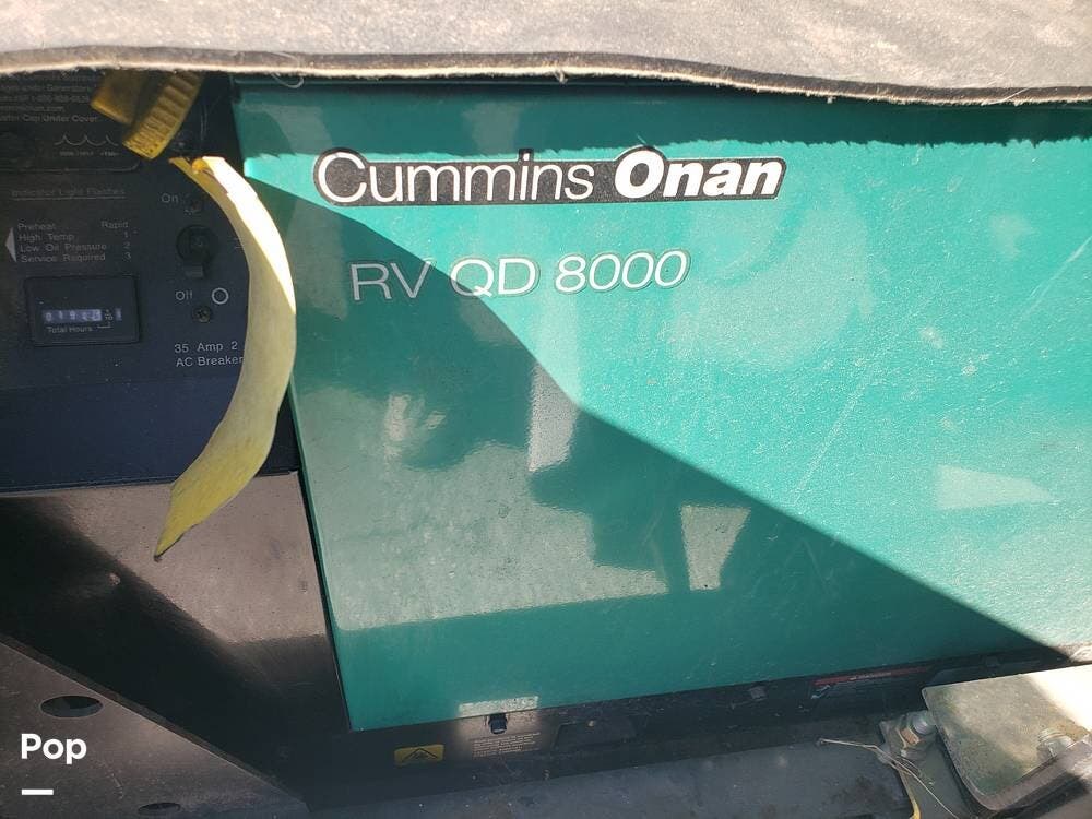 Outside are entry and patio awnings, a flat screen TV, slide-out toppers, an Onan 8.0kW Quiet Diesel generator, a full pass-through storage tray, a roof access ladder, and plenty of storage.
