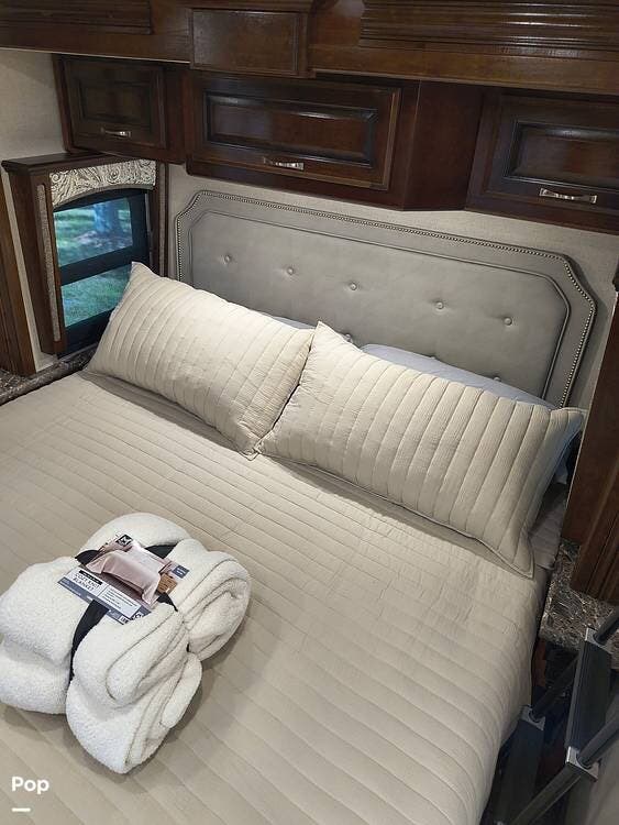 ORIGINAL OWNER, ALWAY IN HEATED STORAGE, Overhead Bunk! Bath and a half! Fireplace! King Bed! Theatre Seating!