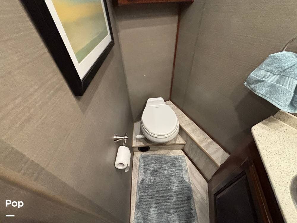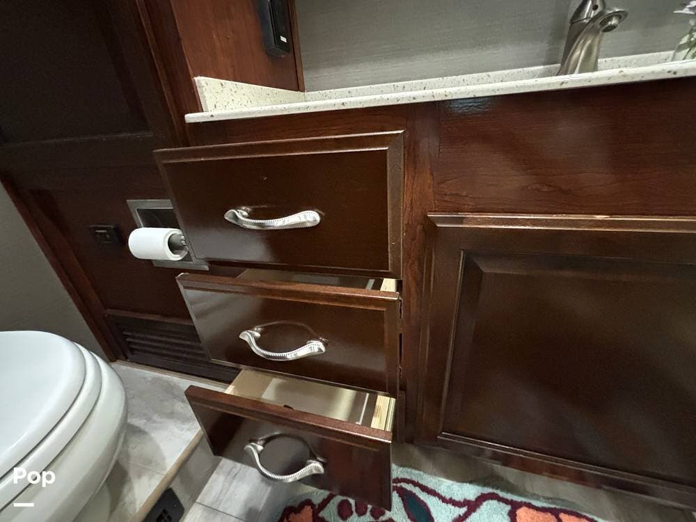 The large slide-outs create an open living area with plenty of seating, while the full bathroom offers a roomy shower and ample storage. The half bath is always a welcome extra.