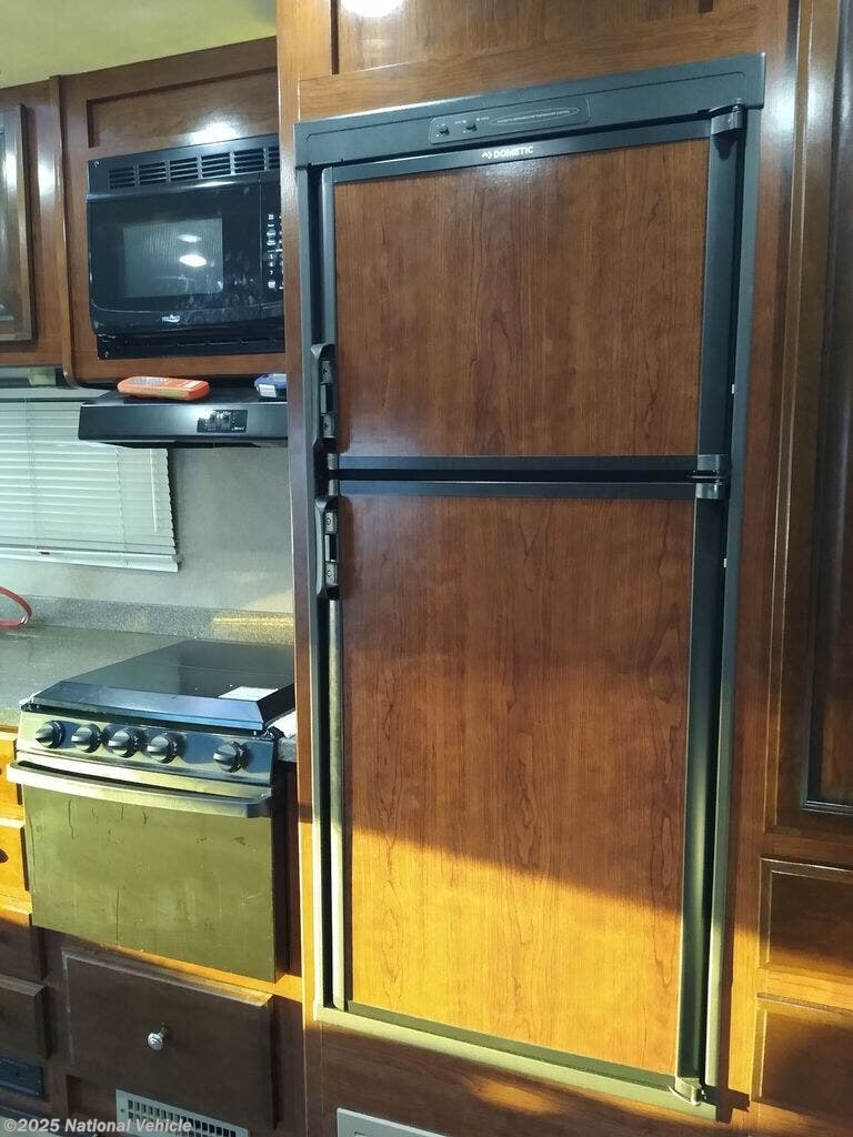 Comfort features include one rooftop A/C plus cab A/C, a propane furnace, and both interior and exterior showers. Entertainment system features TVs in the living room and bedroom (one can be used outside), radio with speakers inside and out, cable ready, and satellite prepped.