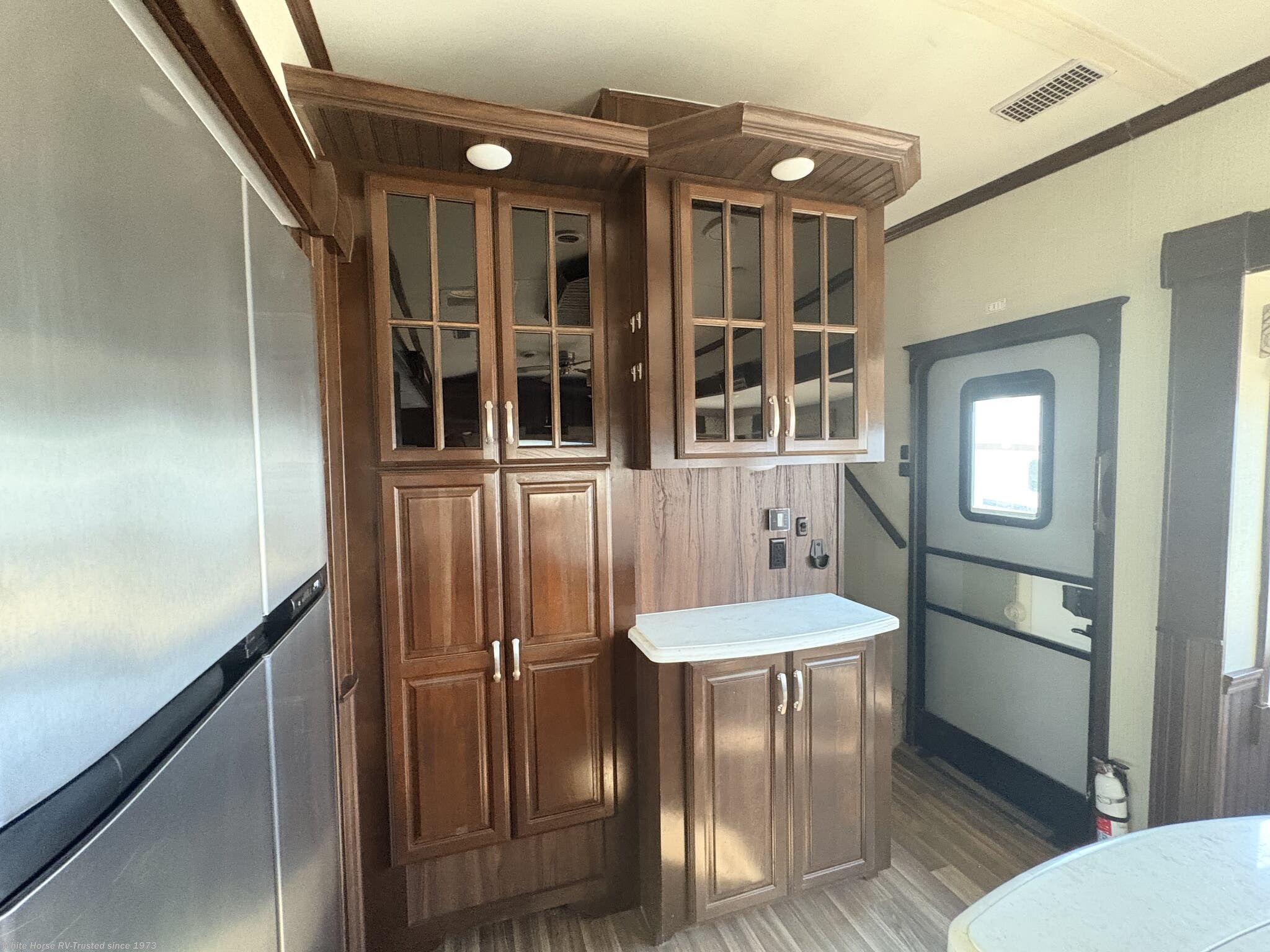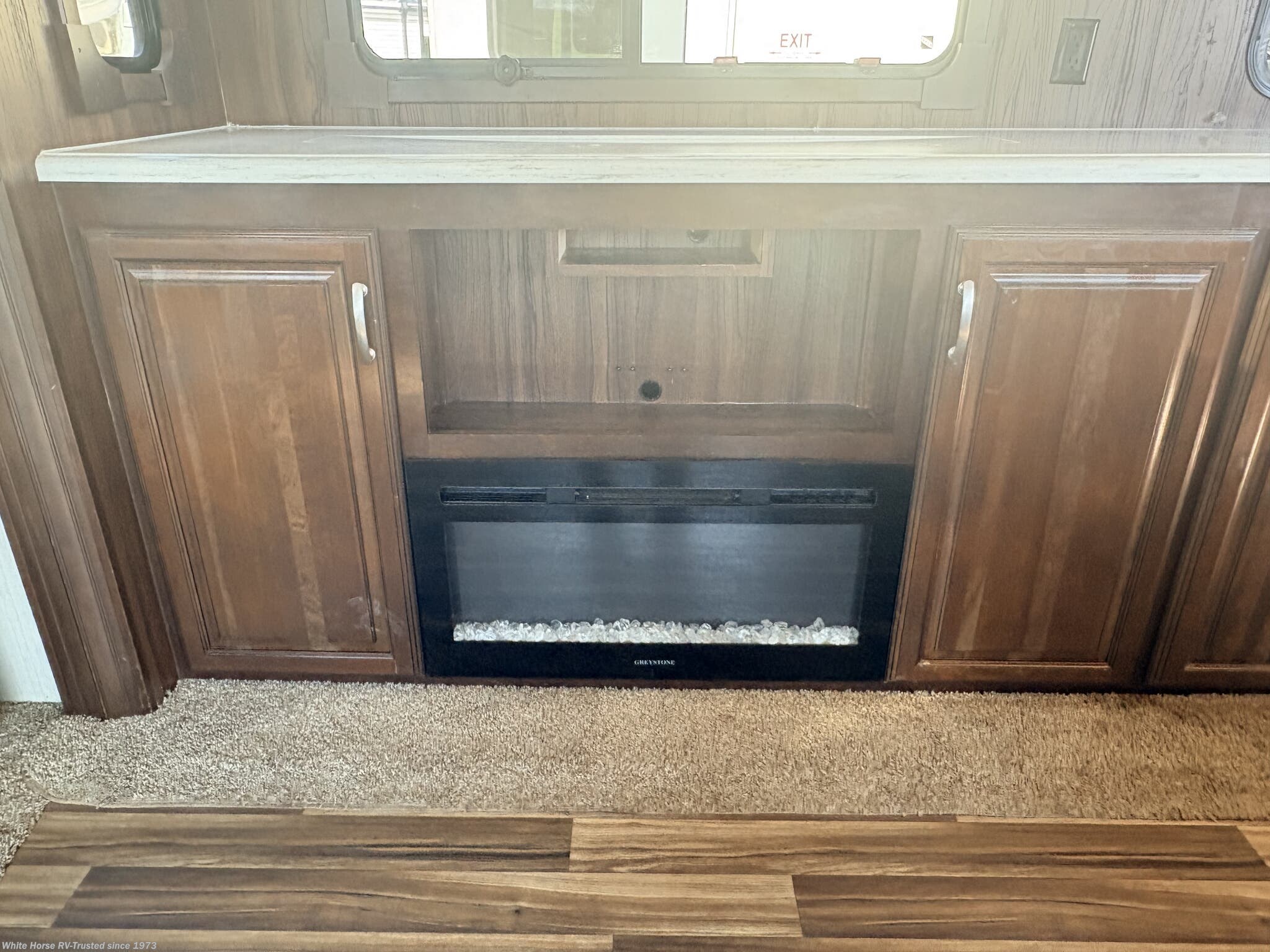 Fireplace, Free Standing Dinette w/Chairs, Hide-A-Bed, King Size Bed, Overhead Cabinetry, Solid Surface Countertops, Theater Seating
