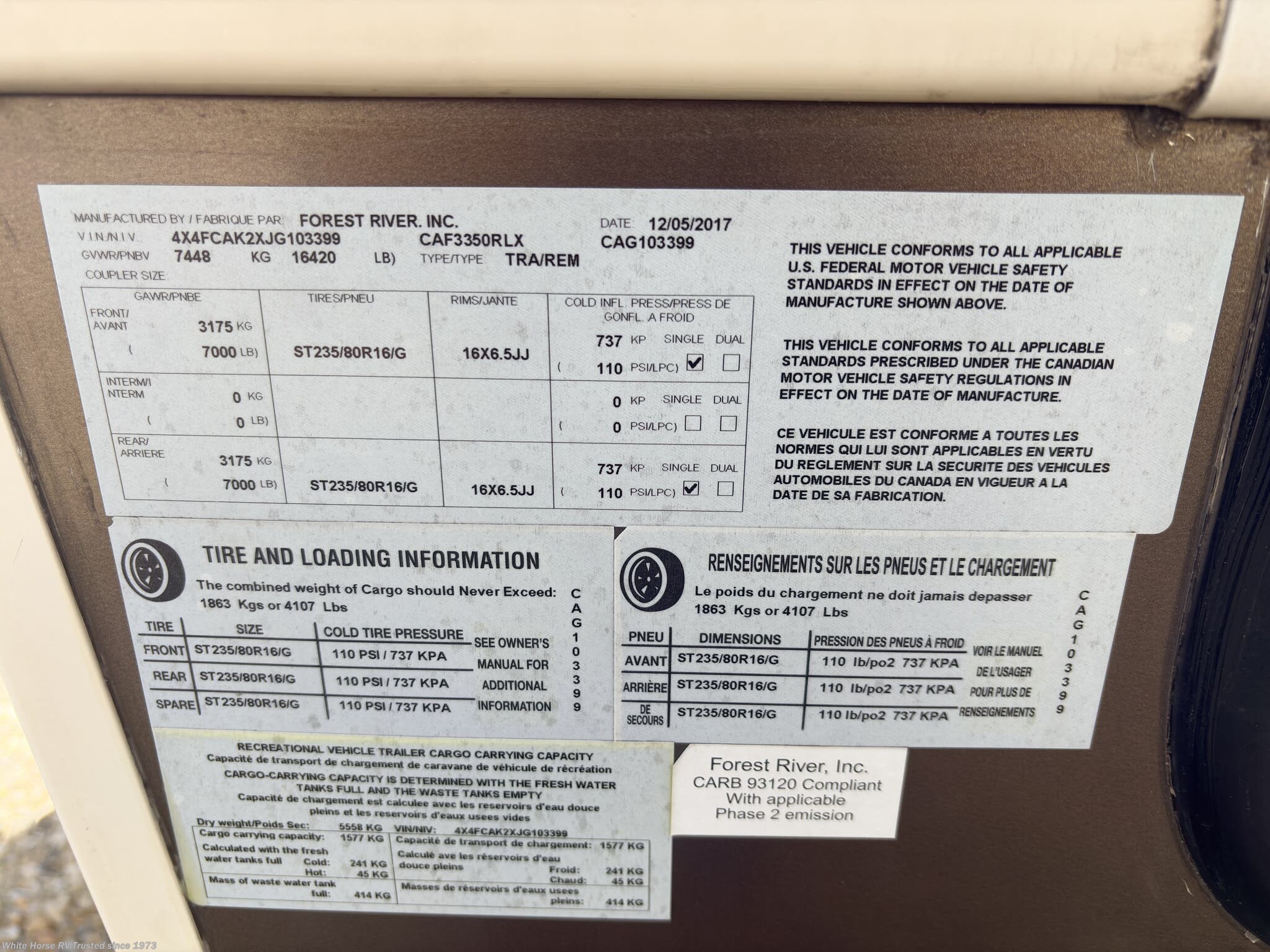 Request More Info on this 2018 Forest River Cardinal 3350RLX Offered for sale by White Horse RV Center