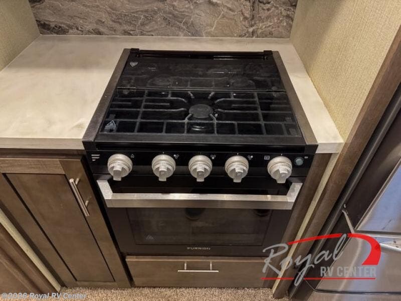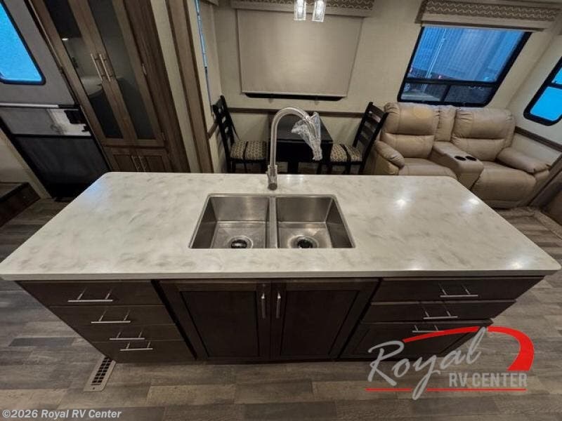 Plan to make many memories with your family while you camp in this Cardinal Limited 3655RSLE fifth wheel. In the kitchen you will enjoy features such as solid surface kitchen sink covers which adds a bit more work space. Your perishables can be stored in the 20 cu. ft. residential refrigerator, plus there is a Furrion 2 in 1 oven/range. Along the rear wall there is a 90" sofa with a hide-a-bed where you can relax after a day of being outdoors. Additional seating can be found at the two recliners or optional theater seats. Enjoy watching a movie or show at the entertainment center which is located within the roadside slide out. Head upstairs and you will find the bathroom and the front bedroom. In the bedroom enjoy a good night's rest on the king bed.