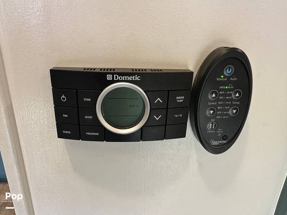 The Dometic dual-zone comfort control center lets you manage heating and cooling from one central location. A Suburban 40,000 BTU furnace keeps the coach warm when temperatures drop, and the Intra Vac central vacuum system with a front-storage-compartment port makes cleanup a breeze.