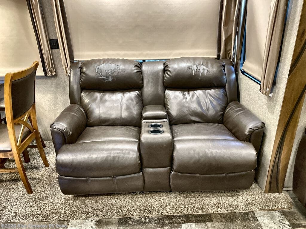 Come see just how fun and comfortable your next camping trip can be with this 34RL2 Forest River Cedar Creek Hideaway Edition fifth wheel. With triple slide outs you will have plenty of living space throughout this model for your family of four. The combined kitchen and living area have plenty of space to relax plus there is a 55” LED TV, fireplace, and plenty of kitchen amenities such as a three burner range, 19 cu. ft. stainless steel refrigerator, and an island with a double sink. In the bathroom you can easily get ready for your day. Here you will find a toilet, sink, medicine cabinet, and a shower with a seat. Retreat to the front bedroom where you will find a queen bed, plenty of storage with the dresser and the large front wardrobe plus there is an area in the wardrobe that has been prepped for a washer and dryer and more!