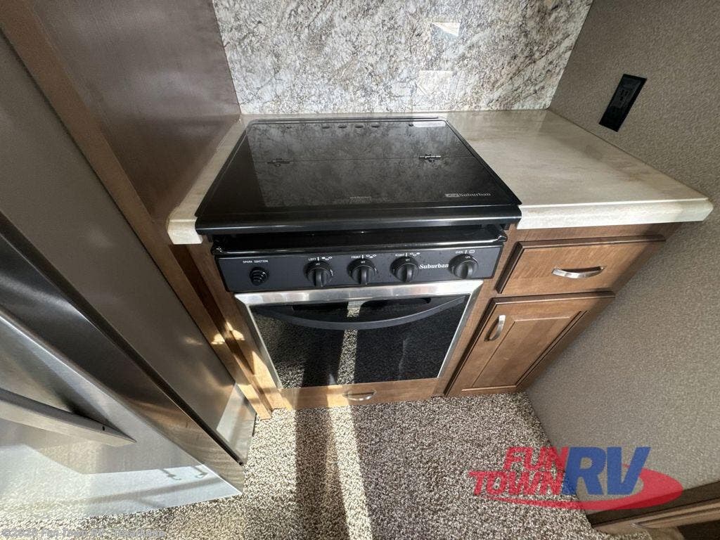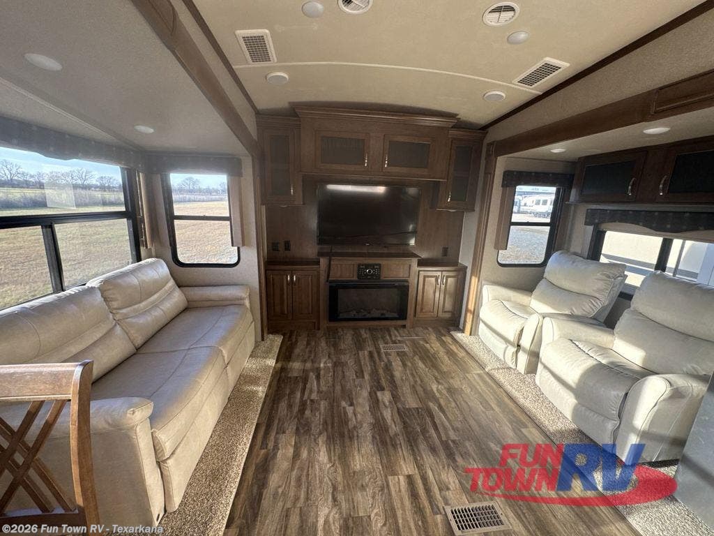 With any Forest River Cedar Creek Silverback Edition fifth wheel you will find cathedral slide rooms in the main and bedroom slides which help to open up the living space throughout each model. You will enjoy a good night’s rest of the Serta residential mattress plus the deluxe blackout roller shades add the privacy you desire. The kitchen is everything that you would expect to find and more from the recessed stove top with glass cover and front, full panel backsplash, to the stainless steel under-mounted sink, you won’t be disappointed! The 36" electric fireplace, Congoleum Designer Carefree plank flooring and Shaw carpeting are just a few of the other comforts you will find throughout each model and more!