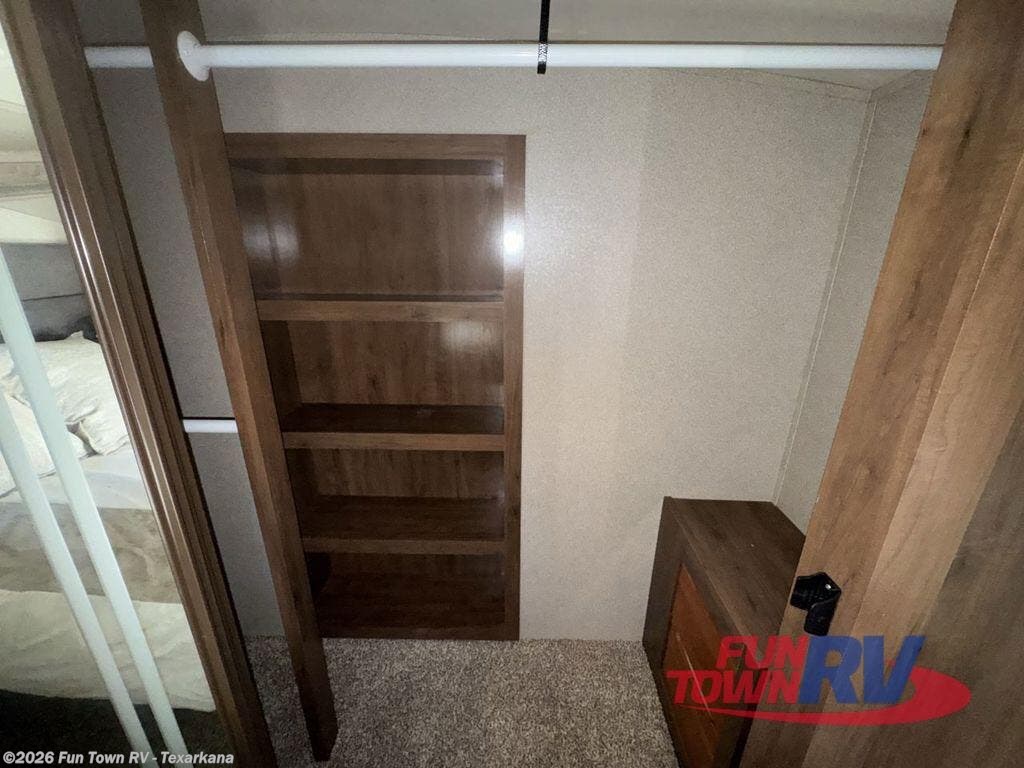 Start your next camping trip with this Cedar Creek Silverback fifth wheel 29RE by Forest River. This model features triple slide outs and two of the slide outs are in the rear of this model which helps to maximize the floor space. Enjoy watching your favorite shows or a movie or two at the rear entertainment center and for those chilly evenings you can enjoy the electric fireplace. The kitchen area features a free-standing table with seating for four plus along the interior wall there is extra counter space and a double sink. When you are ready to call it a day, then head up the stairs to the front bedroom. Here you will find a queen bed or you can choose an optional king. The front wardrobe features plenty of storage plus it is also prepped for a stackable washer and dryer and more!