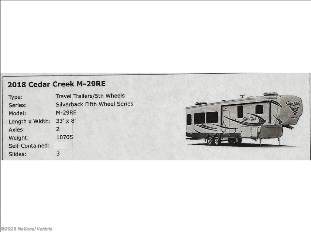 Request More Info on this 2018 Forest River Cedar Creek Silverback 29RE Offered for sale by National Vehicle