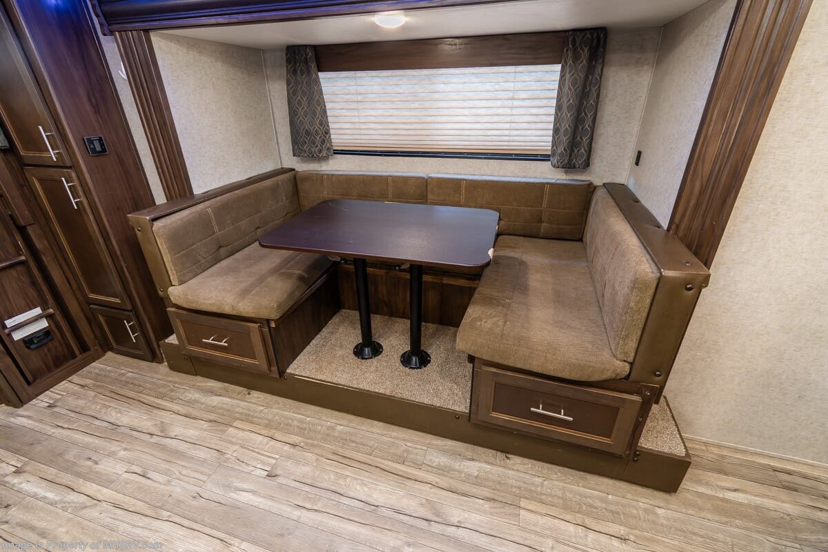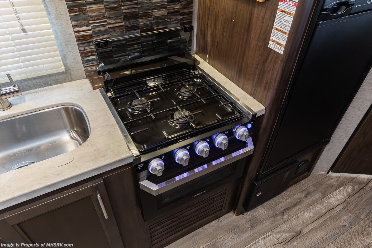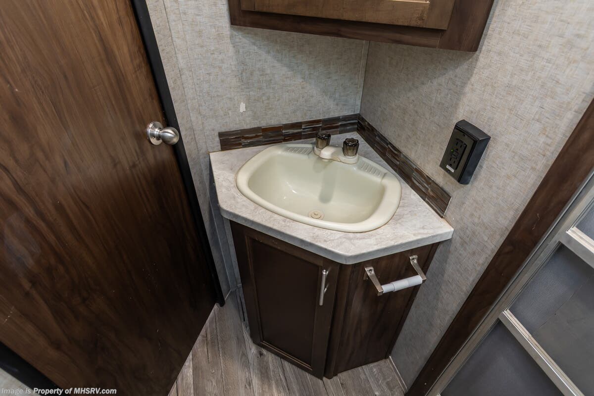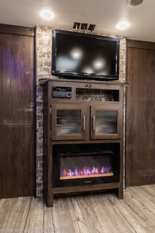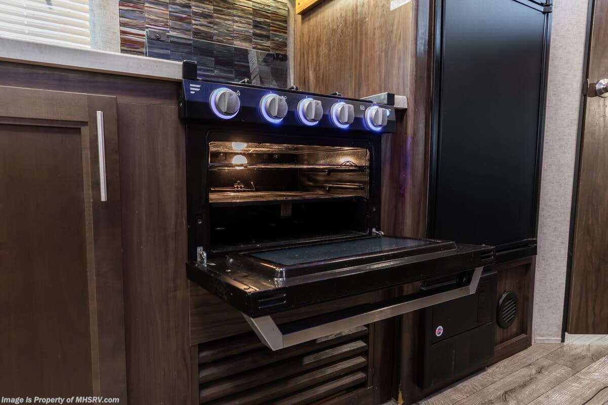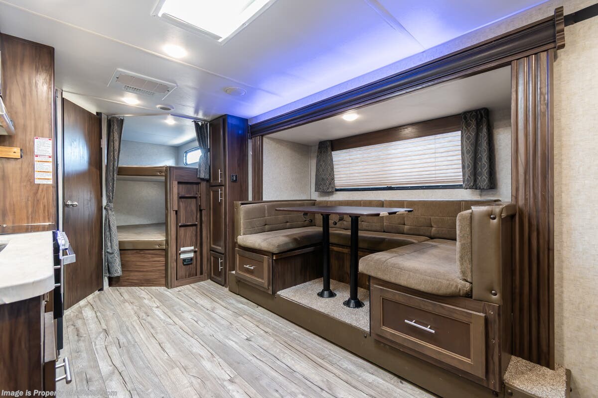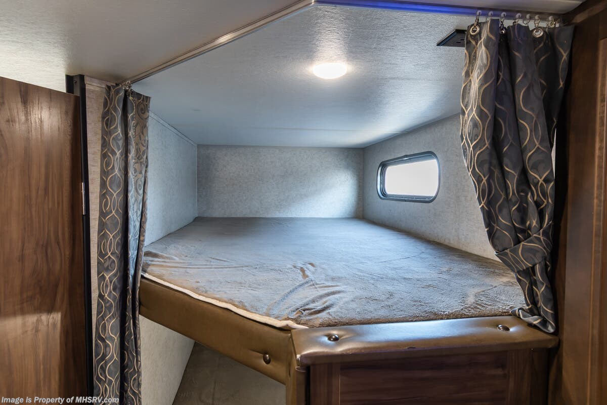 More About This RV This RV features 4 point stabilizers, patio awning, LED running lights, black tank flush, exterior shower, sleeper booth, 7 foot ceiling, dual pane windows, fireplace, 3 burner gas range with oven, bunk beds and much more.