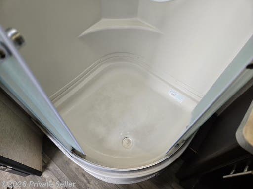 Dinette Bed, Glass Shower Door, Kitchen Sink, Non-Smoking Unit, Overhead Cabinetry, Pantry, Pet Friendly, Pleated Shades, Queen Bed, Removable Table, Self Contained, Shower, Solid Surface Countertops, Toilet, Vanity