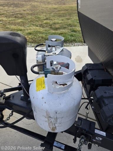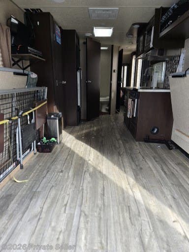 PRICE REDUCED! PRICE NEGOTIABLE! Very Well-Maintained Toy Hauler (Stored in RV Barn) capable of hauling 2 motorcycles, 1 side-by-side UTV, or a Golf Cart. This unit preceded the introduction of ramp patios by the manufacturers; however, it has been engineered by owner with an easily installed / removable patio setup (See Photos). 1 Flat Screen TV in Living Room. HDTV Antenna with Signal Booster. Pre-Wired for Cable TV connections. Outdoor TV Mount. 2 Outdoor Stereo Speakers w/ Blue LED Lighting. AM/FM Stereo w/ Bluetooth and CD Player. Powered 15-foot Awning w/ Blue LED Lighting Under Awning. Mid-Size Electric / Propane Refrigerator / Freezer. Microwave. 3-Burner Propane Stove w/ Oven. Range Hood w/ Light and Exhaust Fan. Cover for Kitchen Sink. Multi-Shelf Pantry (See Photos). Electric 13,500 BTU Ducted Air Conditioner (30 Amp). Propane 20,000 BTU Furnace. Powered Vent / Fan in Bathroom. Outdoor Shower Equipped. Propane 6 gal. Water Heater. Deep-Cycle 12-volt Battery (Dual-Battery Ready). Dual 20 lb. Propane Tanks. Never-Used Spare Tire. Queen Bed w/ Underbed Storage that Connects to Side-Box Storage Area. 2 Closets in Bedroom. 2 Storage Compartments Above Bed. 2 Foldable Couches that Convert to a 2nd Queen Bed. Collapsible Dining Room Table. Corner Round Shower w/ Glass Doors. Dual-Axle w/ Aluminum Wheels. Electric Drum Brakes. Emergency Break-Away Switch & Cable. Built-In Black Tank Flush System. 28 gal. Black Tank. 38 gal. Gray Tank. 46 gal. Fresh Water Tank.