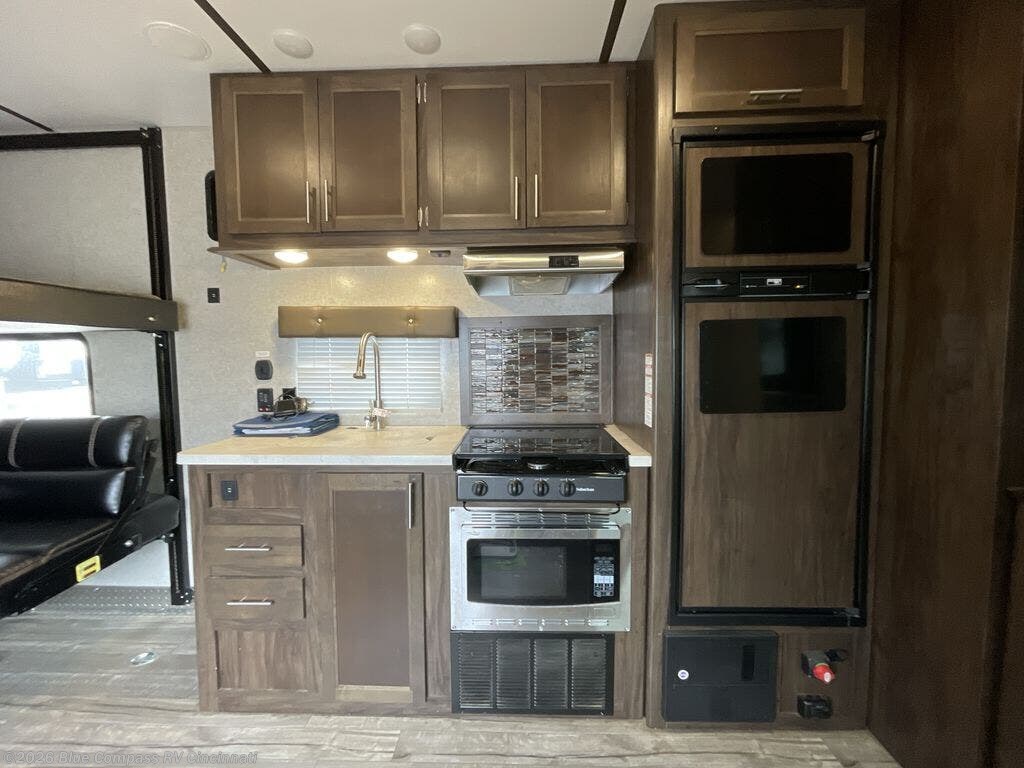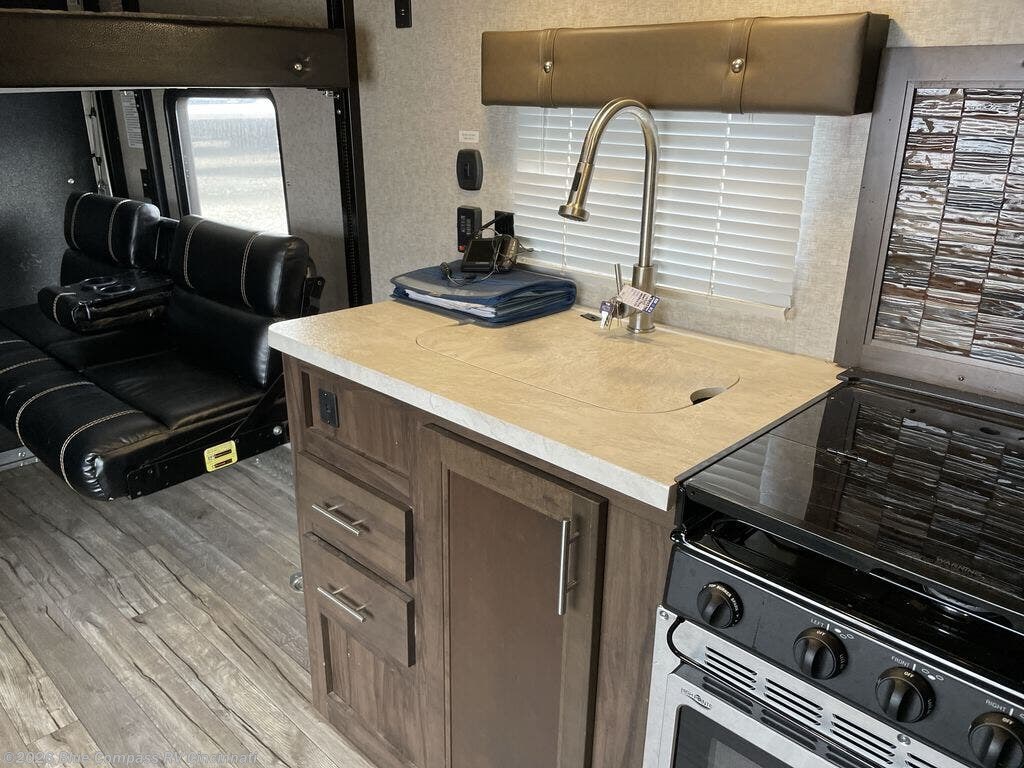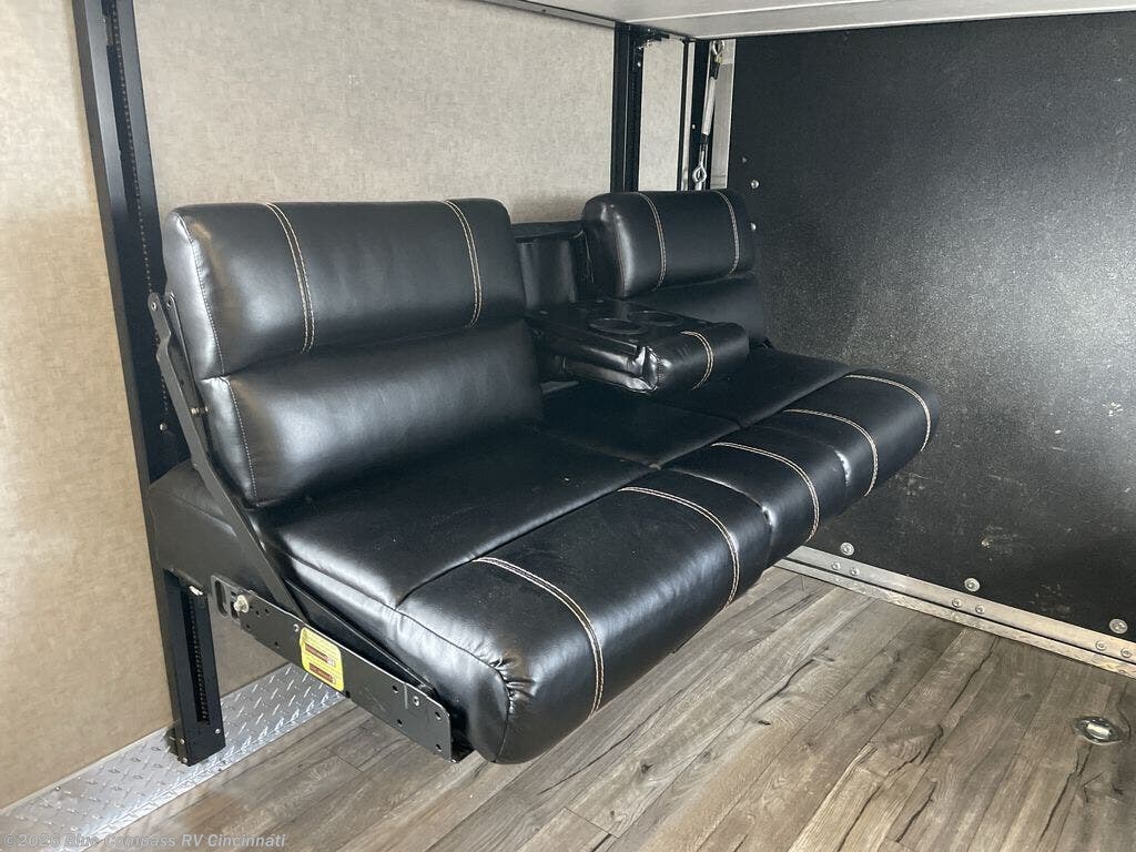 Let this Cherokee Wolf Pack 24PACK14+ take you, your family, and your off-road toys to the outdoor playground of your choice! You can easily load and unload your riding toys with the rear ramp door. After your gear is unloaded from the 14' of cargo space, then set up the two sofas and the removable dinette table for a nice eating/visiting area. Above there is a Happijac bed which you can lower at night. The spacious kitchen features a large sink, three burner range, and a refrigerator. In the private front bedroom you will find a queen bed as well as two nightstands and two wardrobes. Enjoy spending more time outside enjoying the shade of the 15' power awning and more!