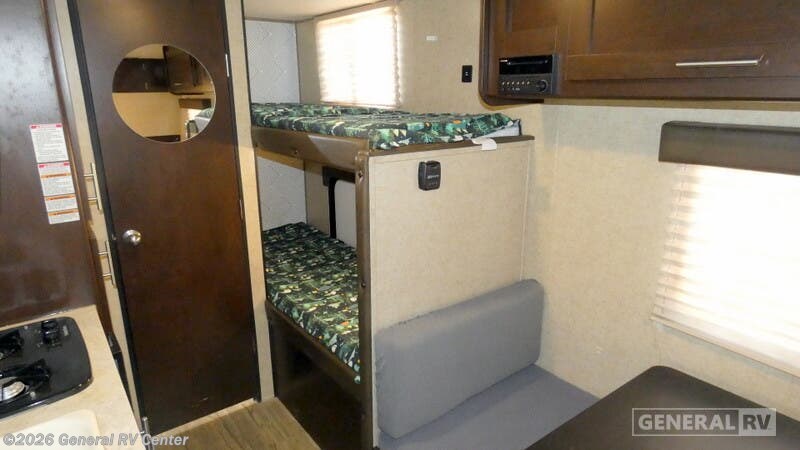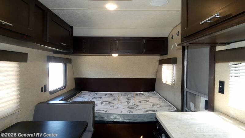 **2018 Forest River Wolf Pup Travel Trailer 16BHS highlights:** - Rear Bunk Beds - Front Queen Bed - Lightweight Single Axle - Compact Family Floorplan - Power Patio Awning The 2018 Forest River Wolf Pup 16BHS is a compact and lightweight travel trailer designed for families or couples who want easy towing without sacrificing functionality. The front queen bed provides a dedicated sleeping area, while the rear bunk beds make this model ideal for kids or guests. A convertible dinette adds additional sleeping flexibility, allowing the 16BHS to comfortably sleep up to five in a well-organized footprint that’s easy to maneuver into state parks and tighter campsites. Despite its smaller size, the Wolf Pup 16BHS offers a fully equipped kitchen and a complete bathroom, making it well-suited for weekend trips or extended getaways. The efficient layout maximizes storage and living space, while the patio awning extends your campsite outdoors for relaxing or dining outside. With its lightweight construction, simple systems, and family-friendly design, the 2018 Wolf Pup 16BHS is an excellent choice for campers looking for affordability, convenience, and versatility in a small travel trailer.