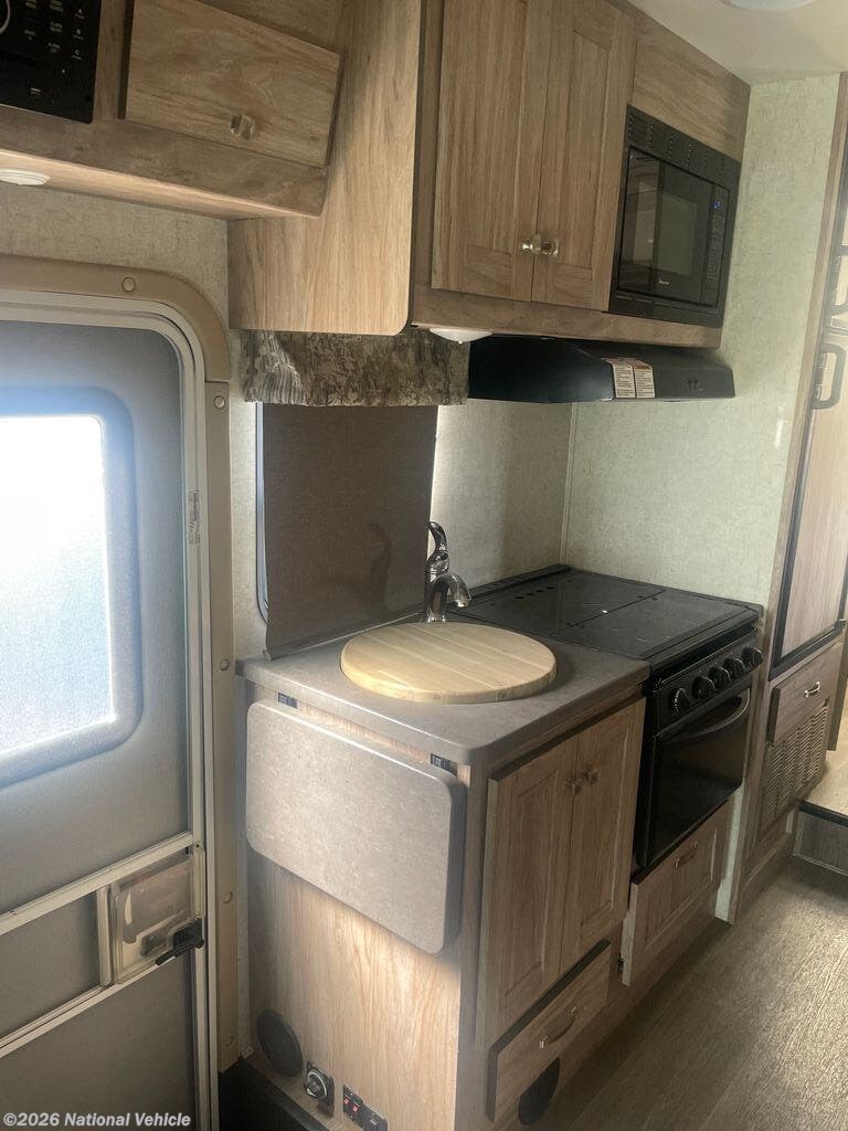 Inside, you?ll find a smart, space-saving layout enhanced by a slide-out that opens up the living area. The interior features attractive finishes, comfortable seating, and plenty of natural light, creating a warm and inviting atmosphere. The fully equipped kitchen includes a refrigerator, microwave, stove, and ample cabinet space, making it easy to prepare meals wherever your travels take you.