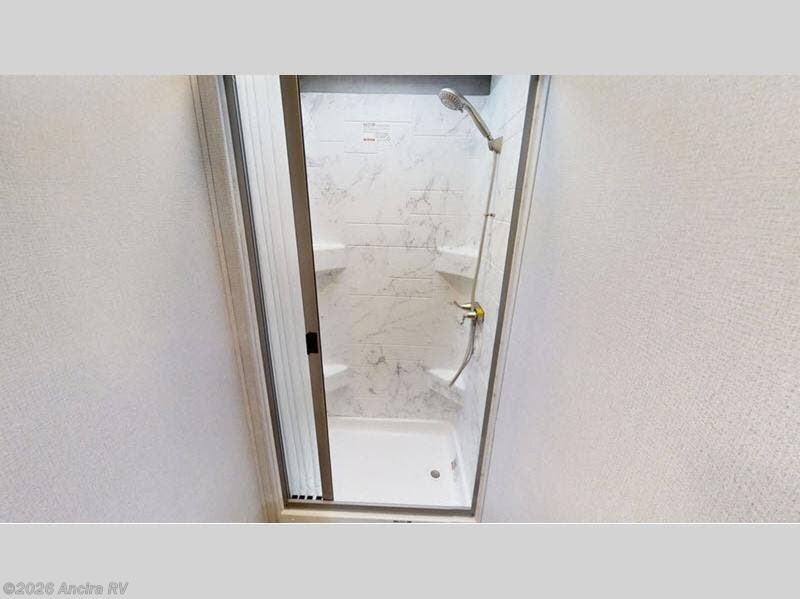 When you are ready to enjoy camping and traveling, take this coach with you! From the leather, swivel driver and passenger seats to the full bathroom, you can enjoy the view with less stops along the way. Once at your destination, easily set up the large slide and power awning, and relax on the U-shaped dinette or outside under the awning. You might even like to add the optional exterior TV. Back inside, you can make meals using the two-burner range and the convection microwave, and the 10 cu. ft. 12V refrigerator will hold all your drinks and cold items. There is a flip-up counter extension for more prep space, and a pantry for your dry goods. At night, sleep on a queen bed while you watch the 12V TV in the bedroom, and your friends can sleep on the cab over bunk and the U-shaped dinette while watching the living area 12V TV.